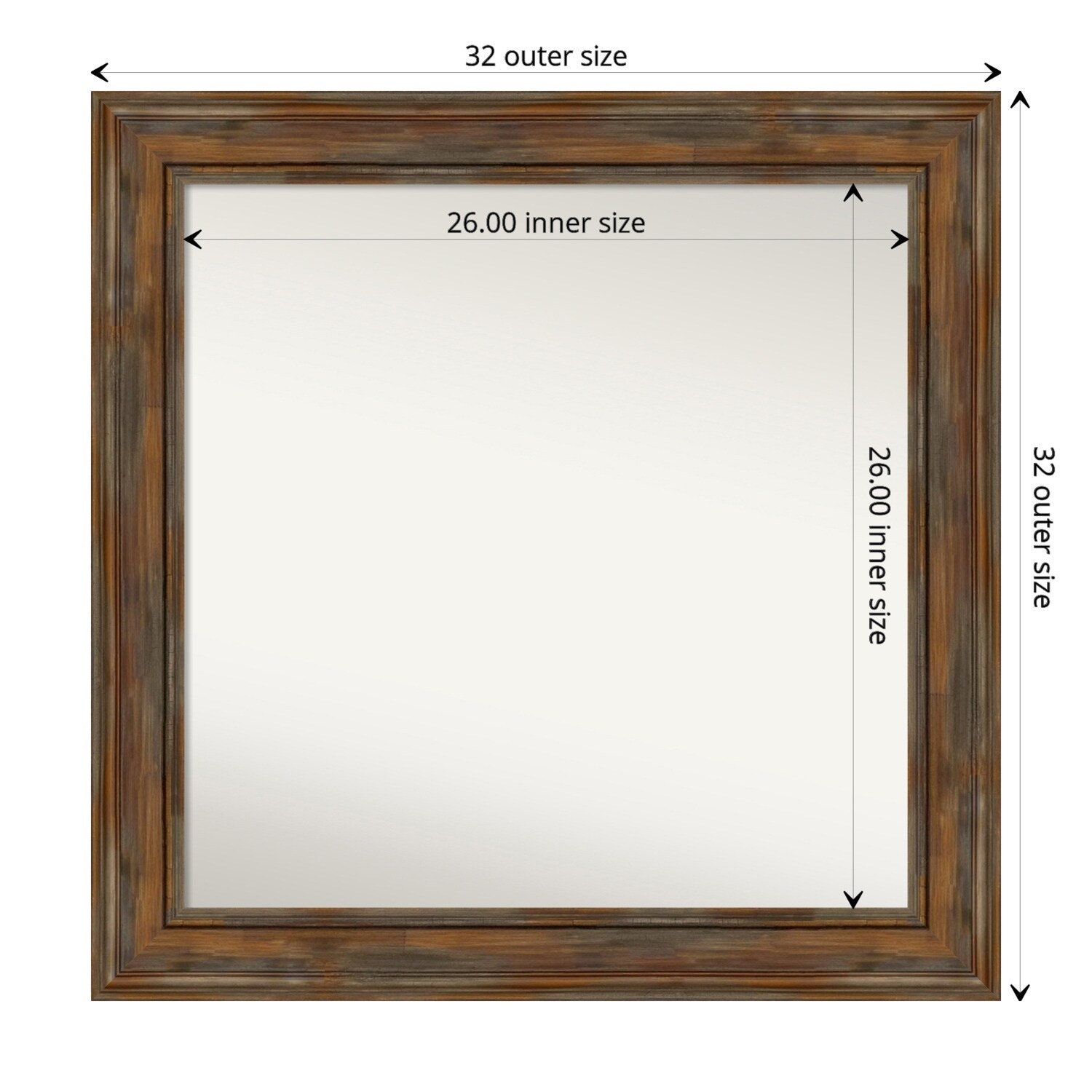 Non-Beveled Wood Wall Mirror - Alexandria Rustic Brown Frame