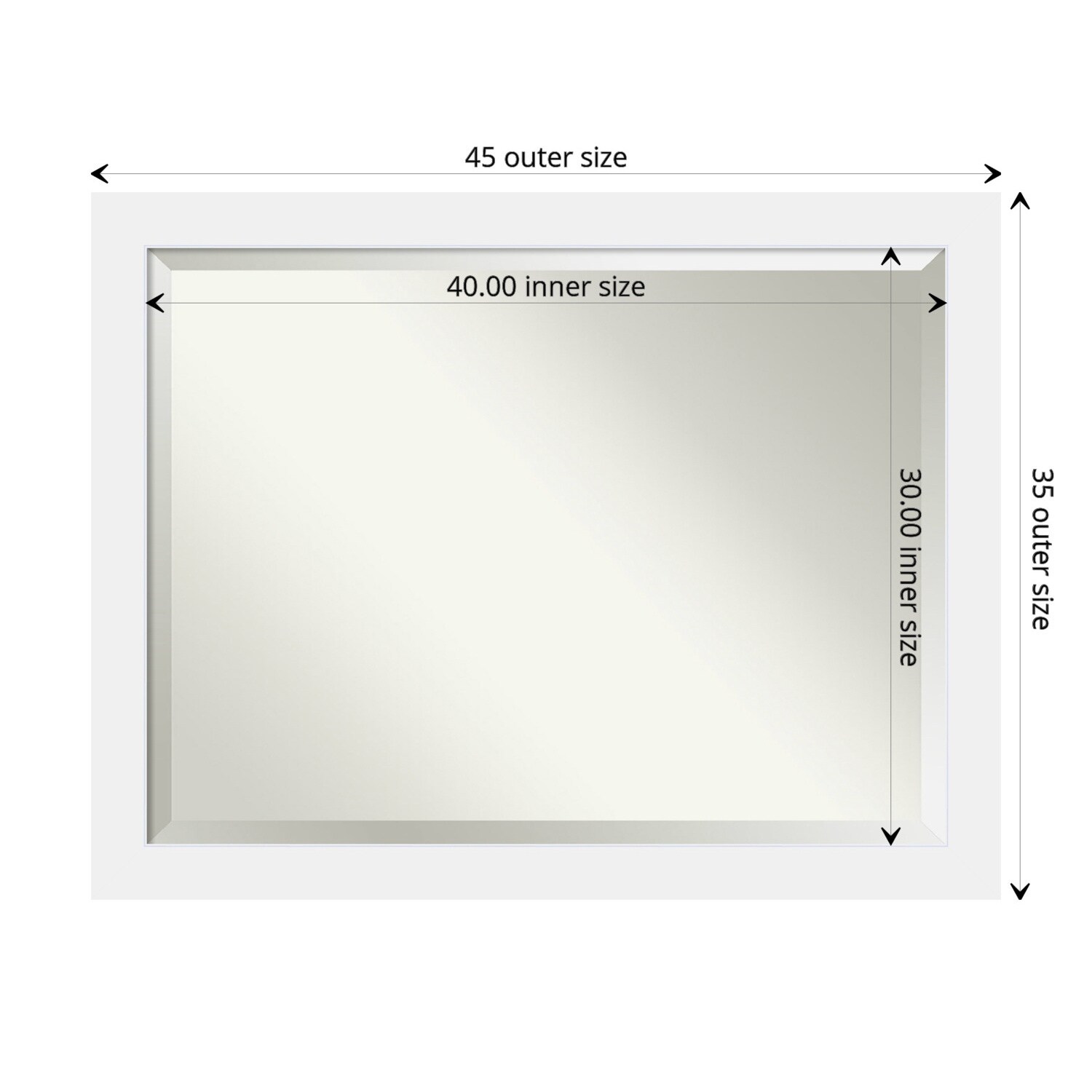 Beveled Wood Wall Mirror - Alexandria White Wash Frame - Outer Size: 45 x 35 in