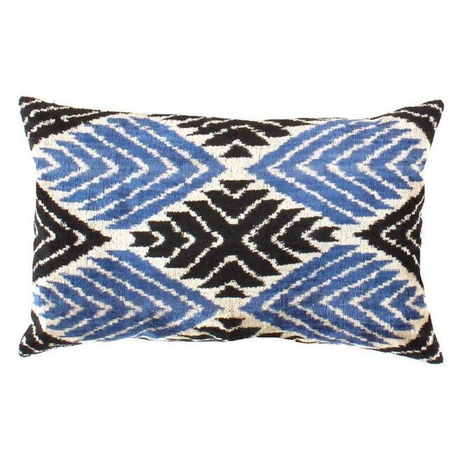 Canvello Black & Blue Silk Ikat Pillows with insert - 16" X 24" - 1' x 1'