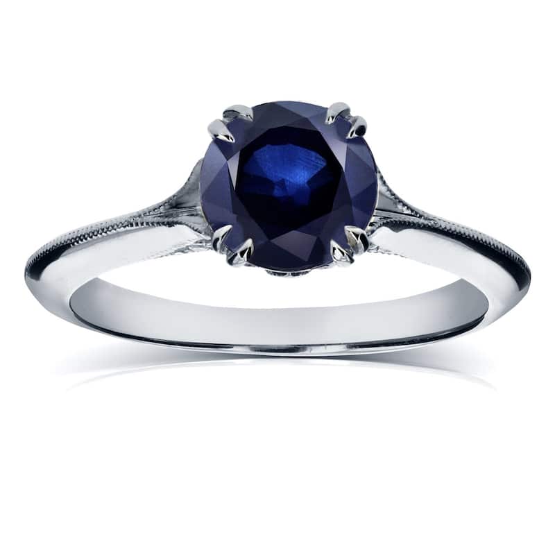 Annello by Kobelli 14k White Gold Blue Sapphire and Diamond Antique Flower Head Soft Knife Edge Ring