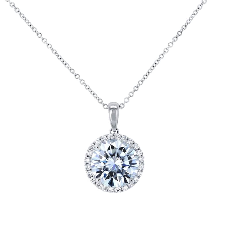 Annello by Kobelli 14k Gold Round 3.10ct Moissanite and 1/4ct Lab Grown Diamond Halo Necklace (GH/VS)
