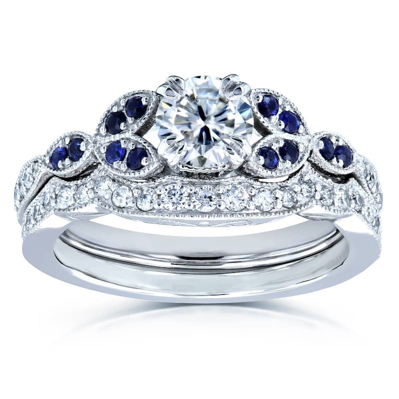 Annello by Kobelli 14k White Gold 7/8ct TGW Floral Round Moissanite Floral Bridal Set with Diamond and Sapphire