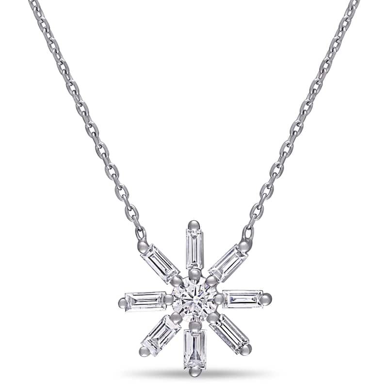 Miadora 14k White Gold 5/8ct TDW Baguette and Round-Cut Diamond Flower Necklace
