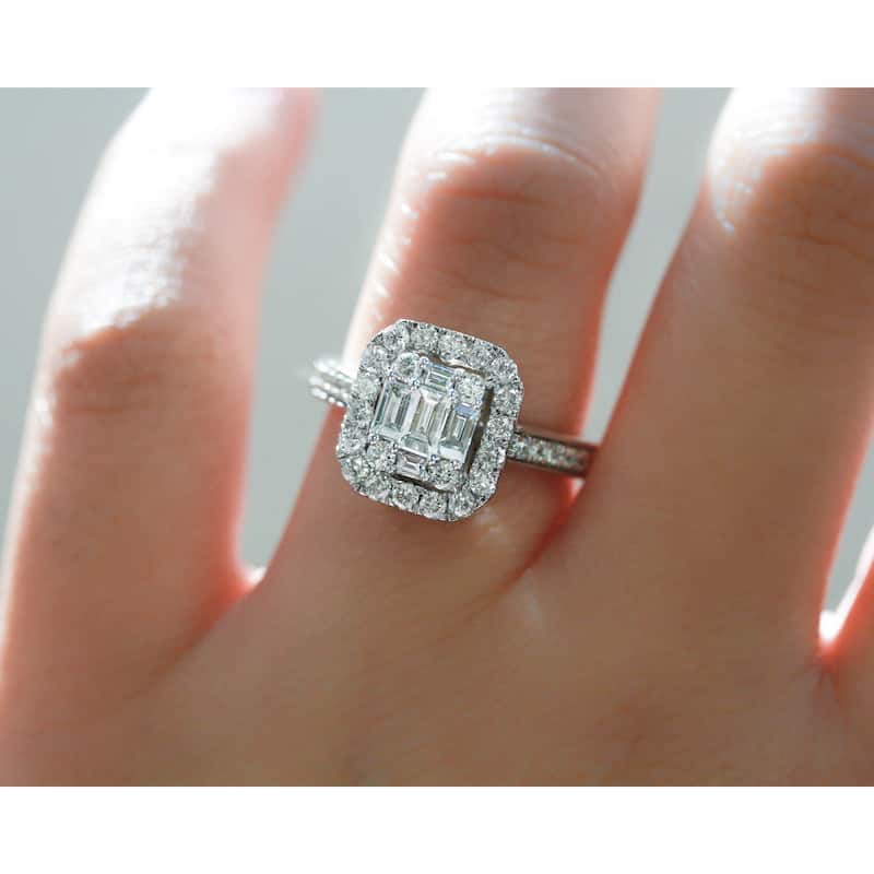 Annello by Kobelli 14k White Gold 1 Carat TDW Multi Diamond Baguette Cluster Pave-Shank Half Eternity Engagement Ring