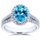 Annello by Kobelli 14k Gold 2 1/2ct TGW Oval Cut Swiss Blue Topaz and Diamond Split Shank Ring (3 Gold Colors Options)