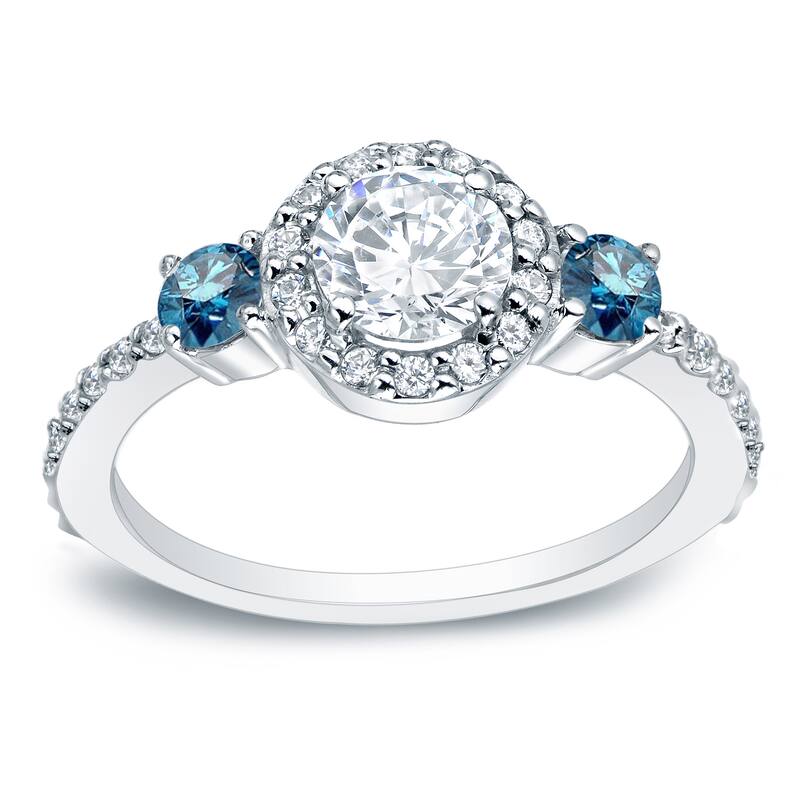 Auriya 3/4ctw Round 3 Stone Halo Blue Diamond Engagement Ring 14k Gold