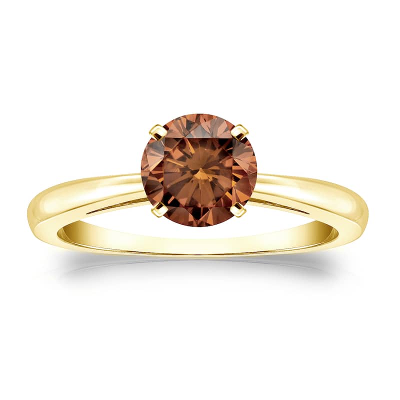 Auriya 3/4cttw Round Solitaire Brown Diamond Ring 14k Gold
