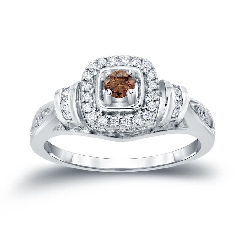 Auriya Modern Round 2/5ct TW Brown Diamond Halo Engagement Ring 14k Gold