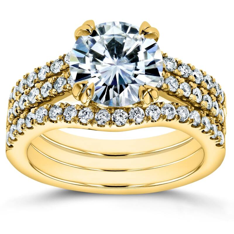 Annello by Kobelli 14k Gold 2 1/2 Carat TGW Round Brilliant Moissanite and Diamond Bridal Rings (DEF/VS, GH/I)
