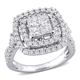 Miadora 14k White Gold 2ct TDW Princess-cut Quad Diamond Double Halo Engagement Ring