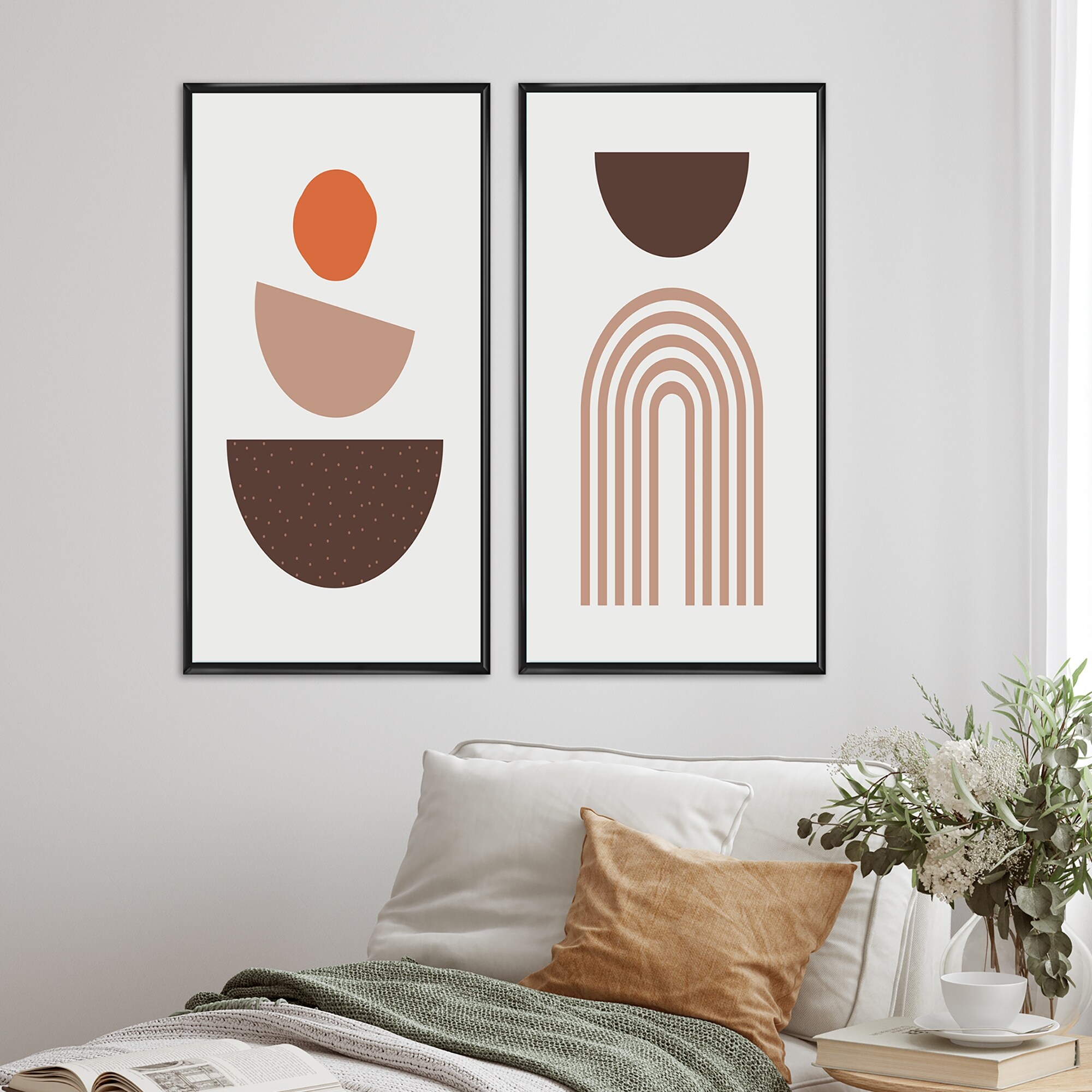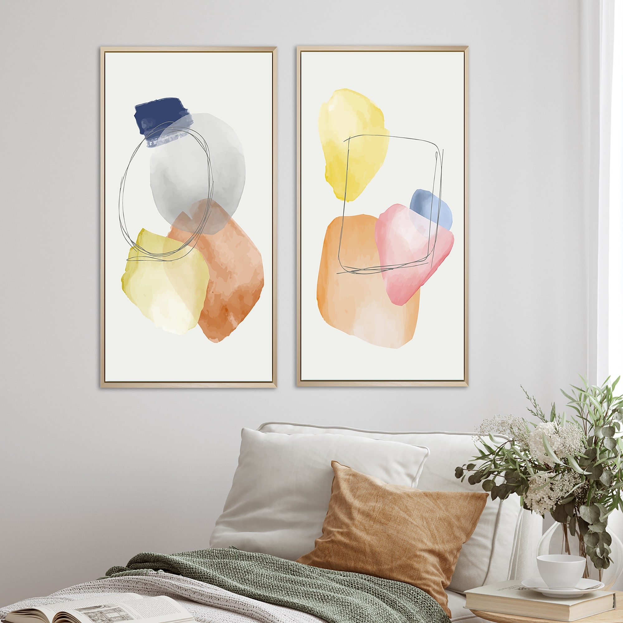 Designart "Minimalistic Creative Designs in Retro Colors I" Abstract Framed Art Set of 2 Pieces