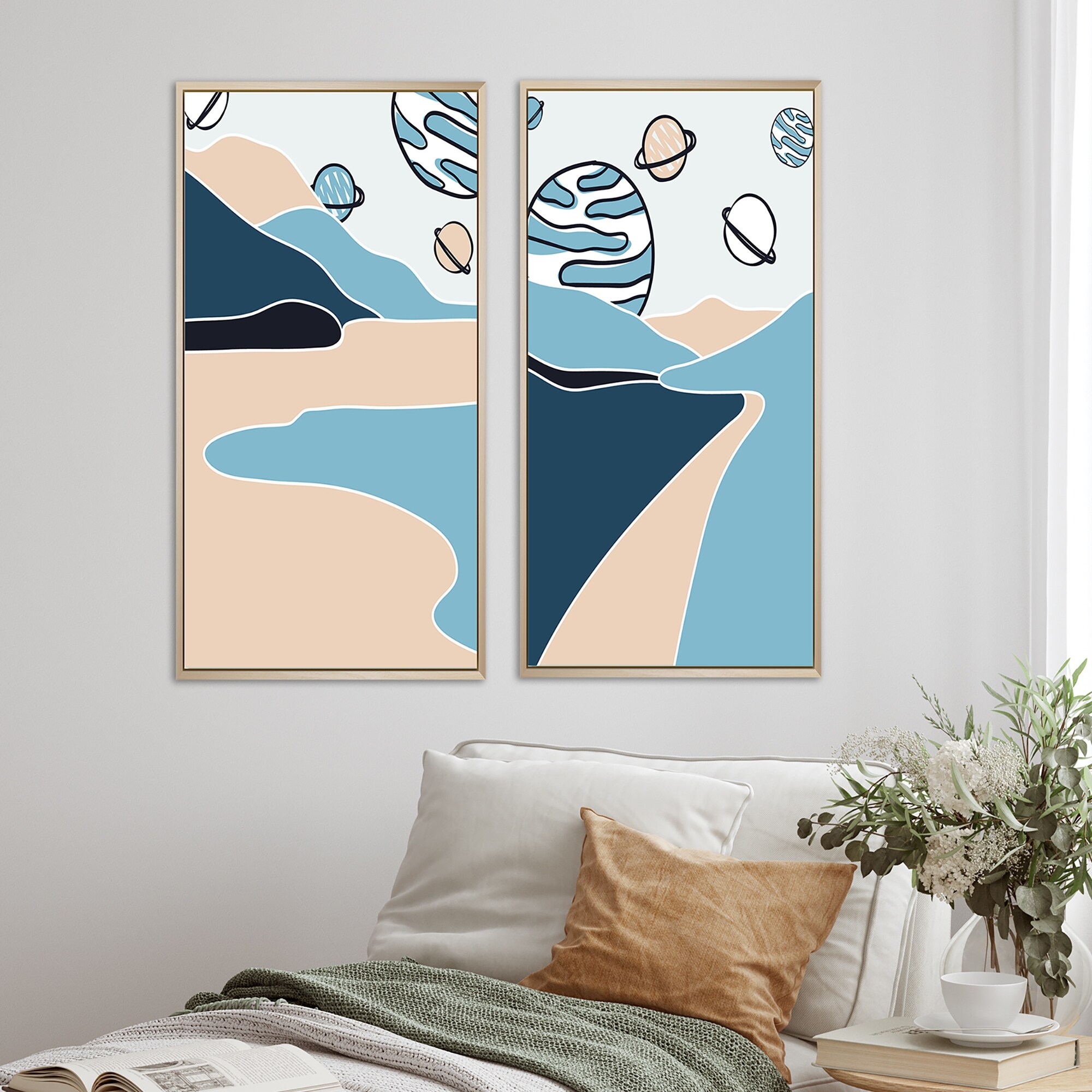 Designart "Organic Shaped Landscape in Vintage Retro Colors I" Landscapes Framed Art Set of 2 Pieces