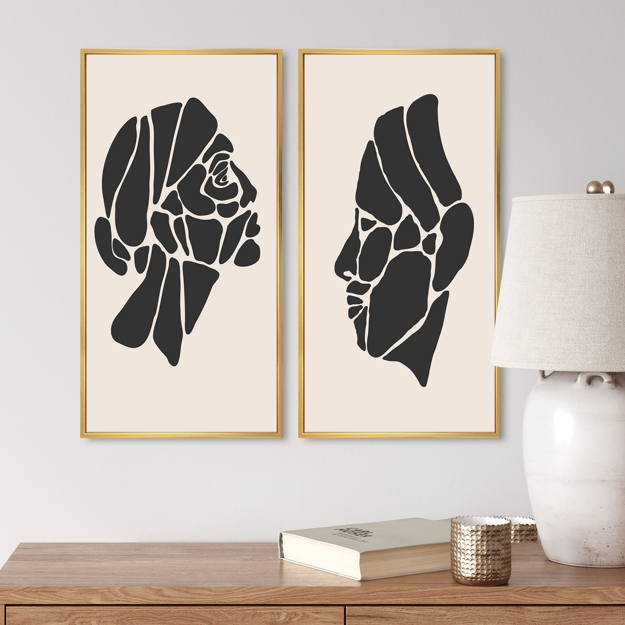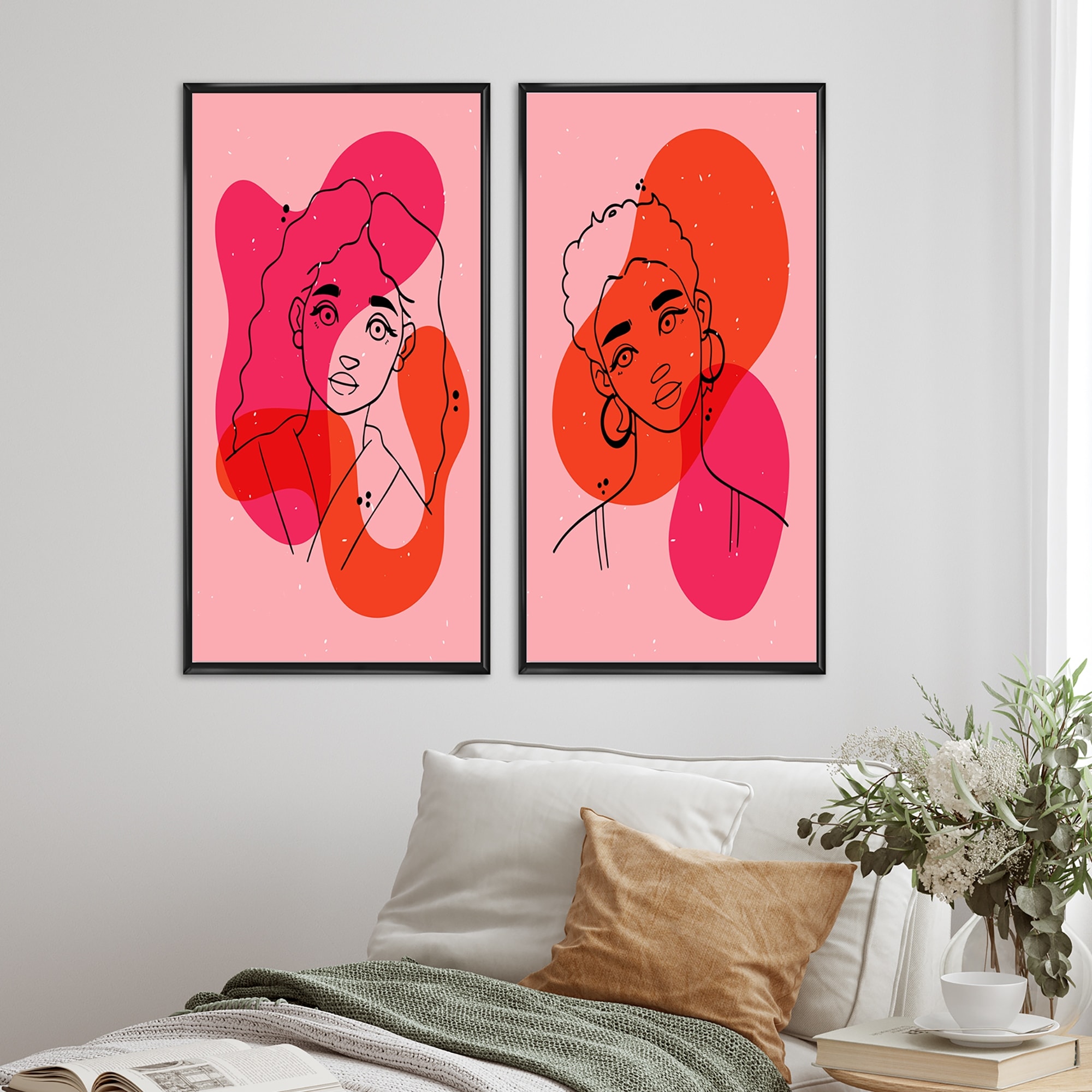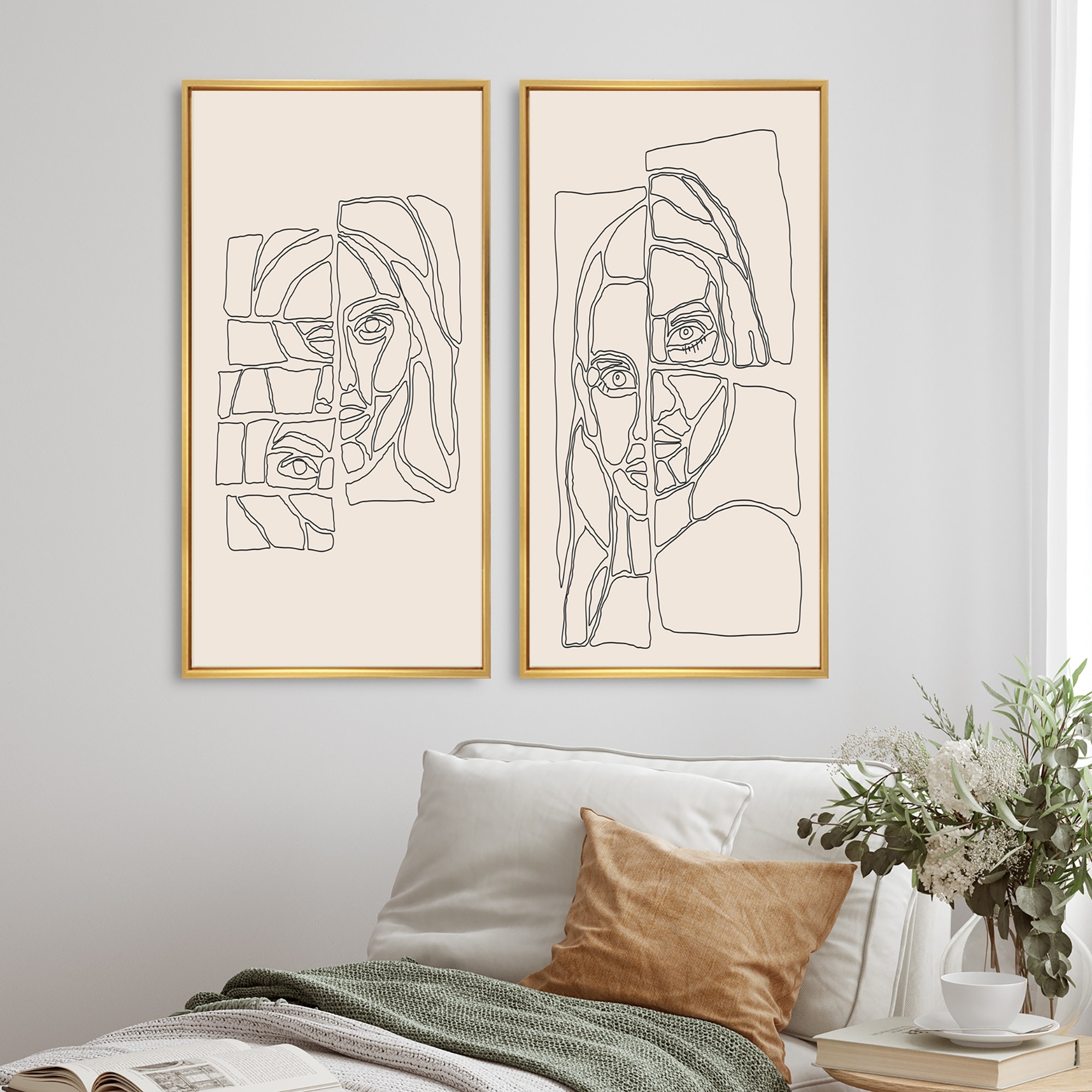 Designart "Abstract Minimalist Woman Portrait XII" Portrait Framed Art Set of 2 Pieces