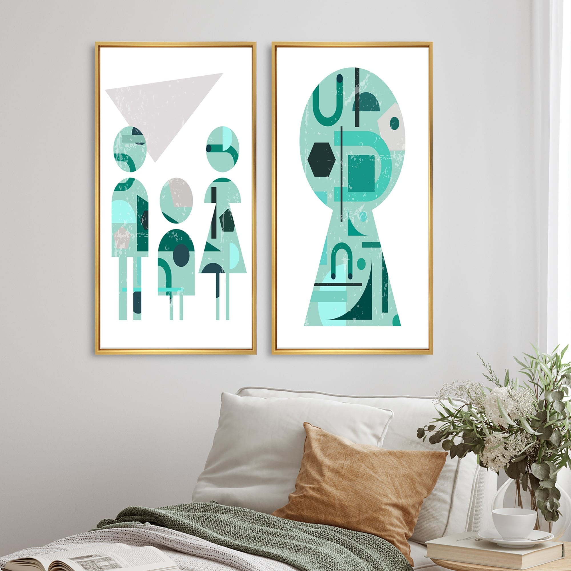 Designart "Turquoise Retro Minimalistic Geometrics I" Geometric Framed Art Set of 2 Pieces