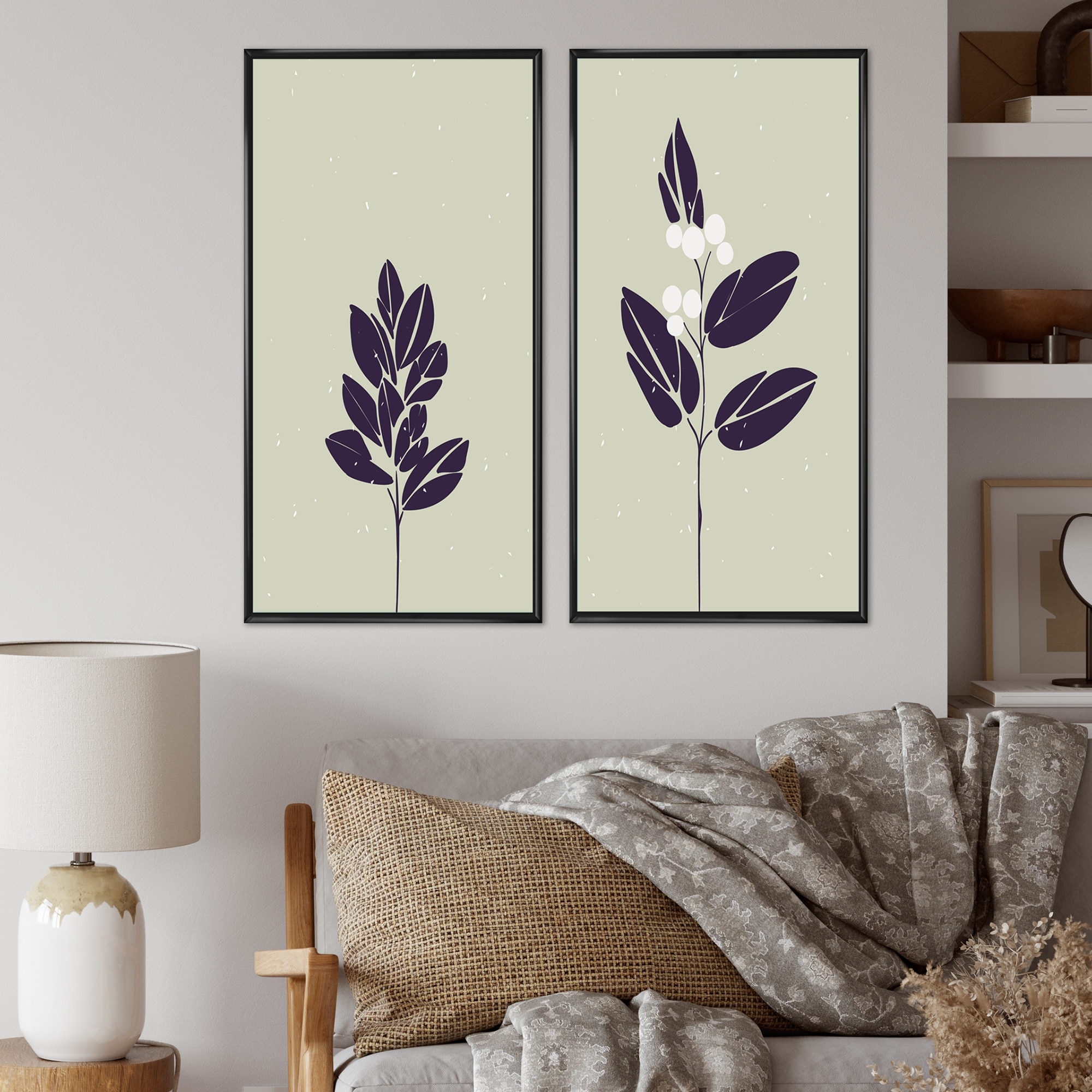 Designart "Minimalist Pastel Leaves IV" Floral Framed Art Set of 2 Pieces