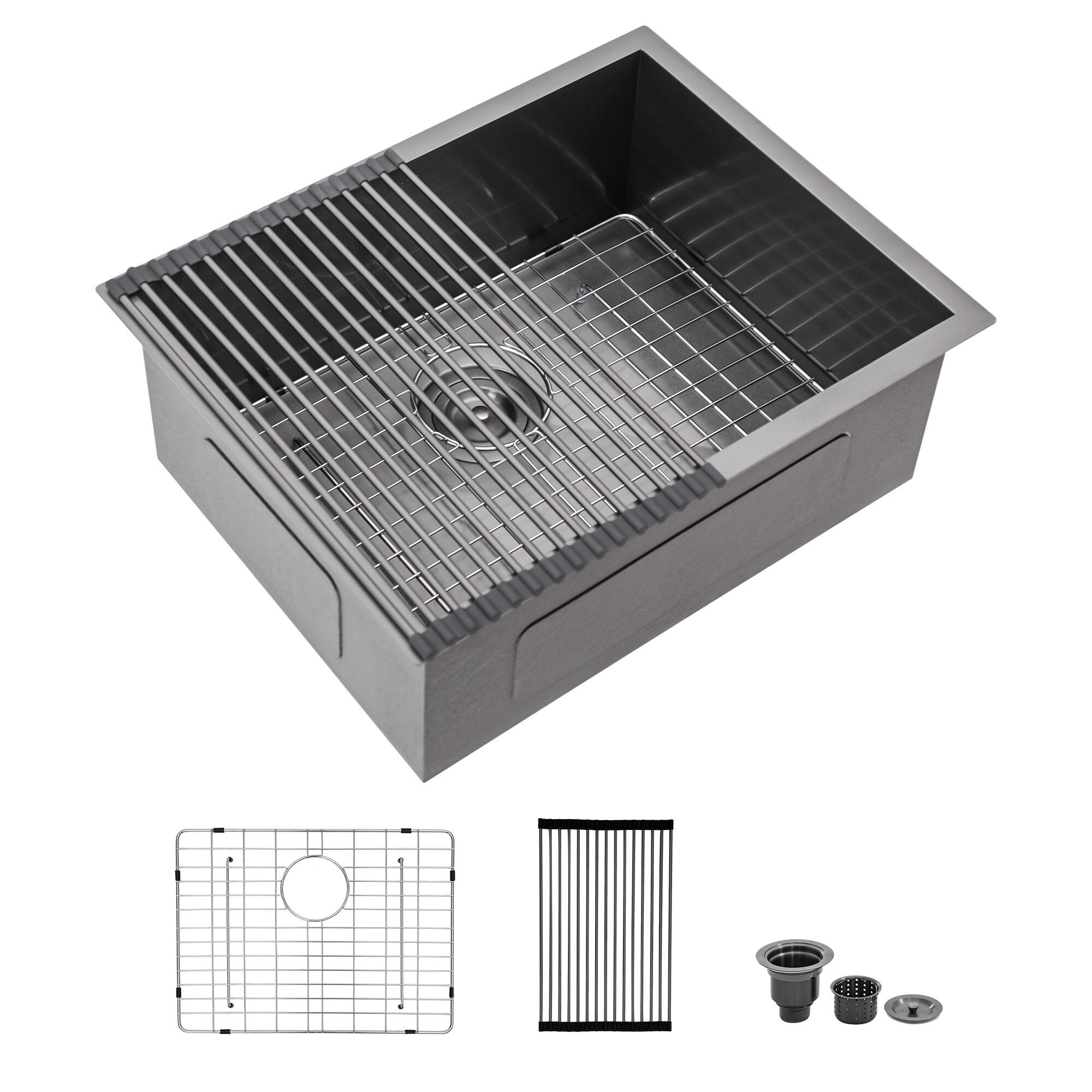 Kichae Gunmetal Black 23 inch Undermount Bar Sink with Bottom Gird - 23" x 18" x 9"