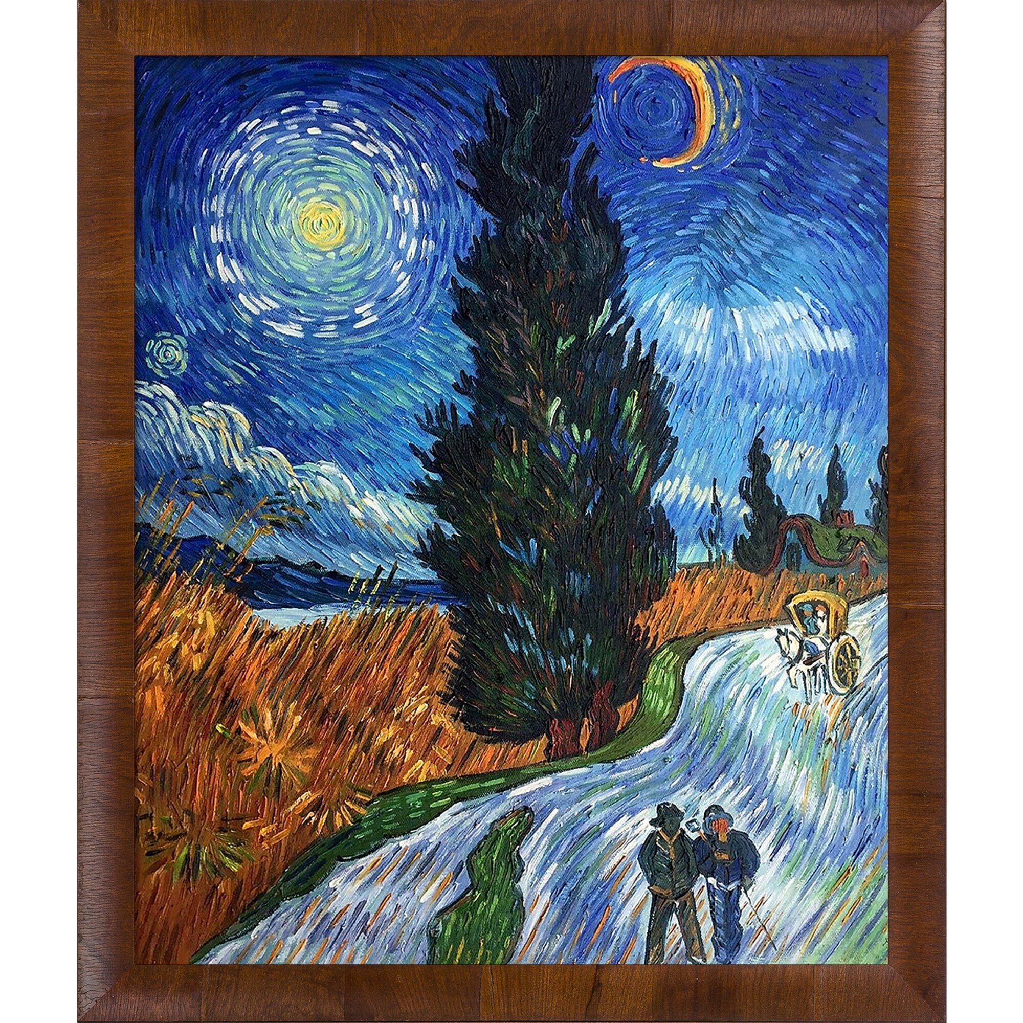 La Pastiche Road with Cypress and Star with Panzano Olivewood Frame ,23"x 27"