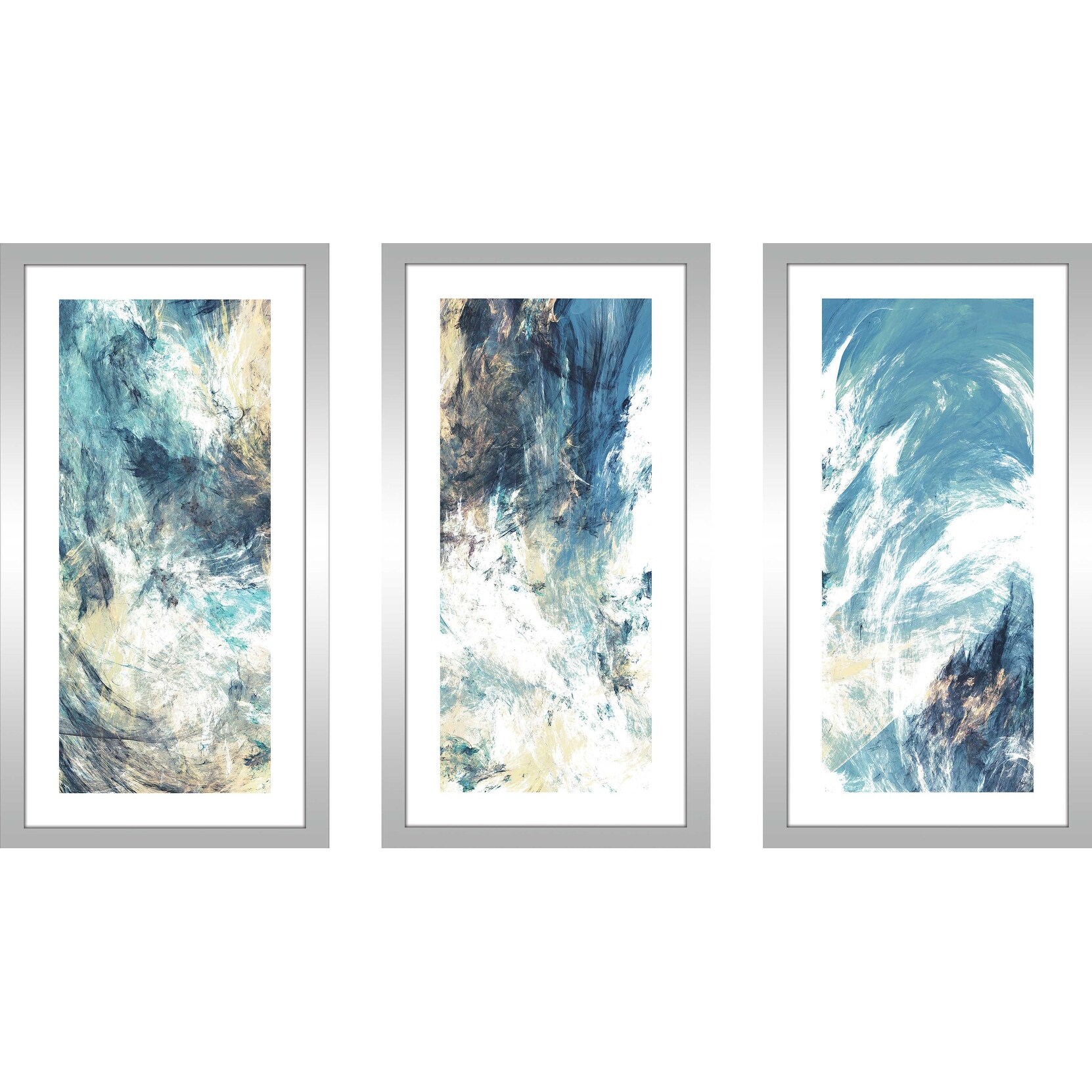 Canvas Triptych Geo Blue Brushstrokes by Ejaaz Haniff - 3 Piece Art Set