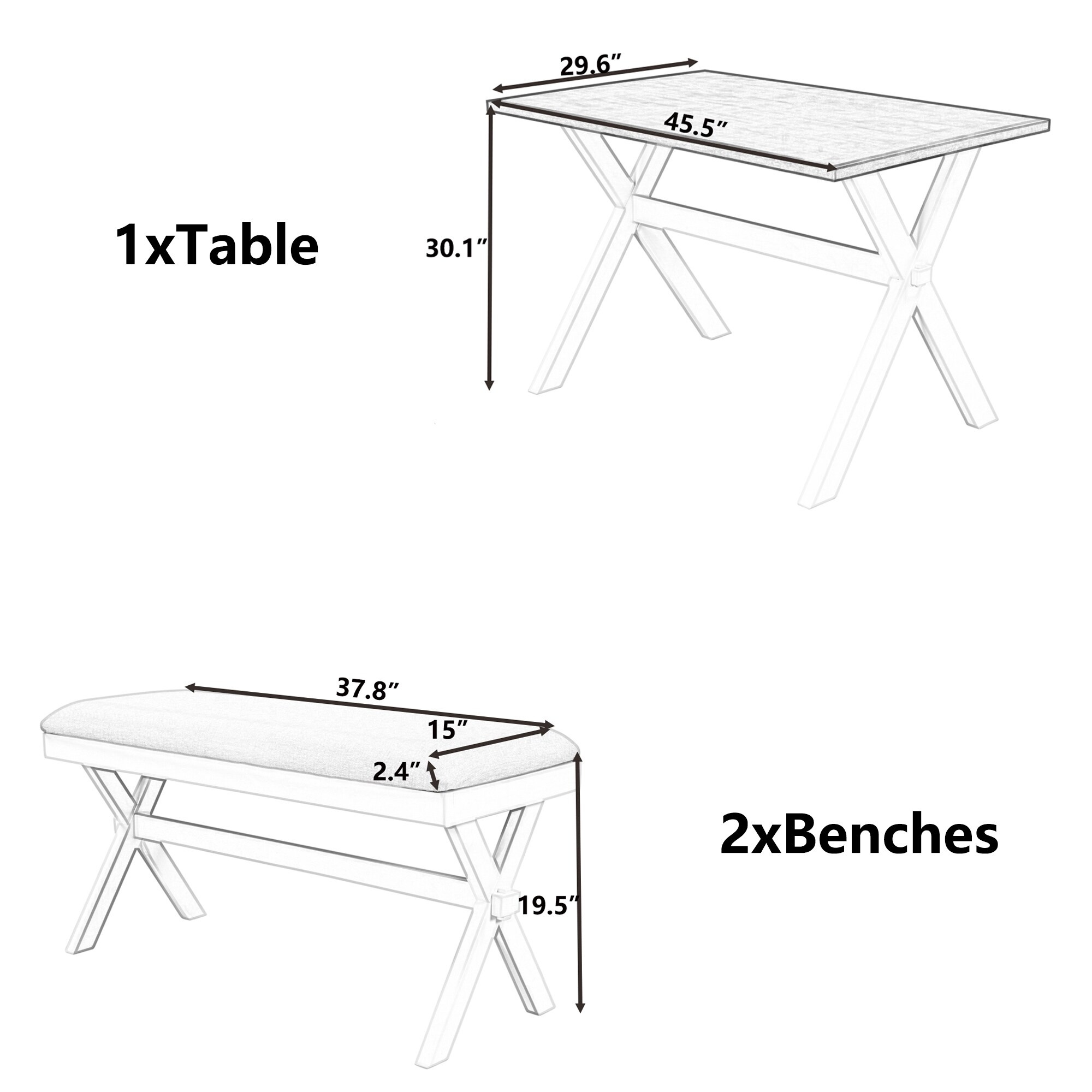 Farmhouse 3 Pieces Wood Dining Table Set with Rectangular Dining Table and Upholstered Benches for Living Room
