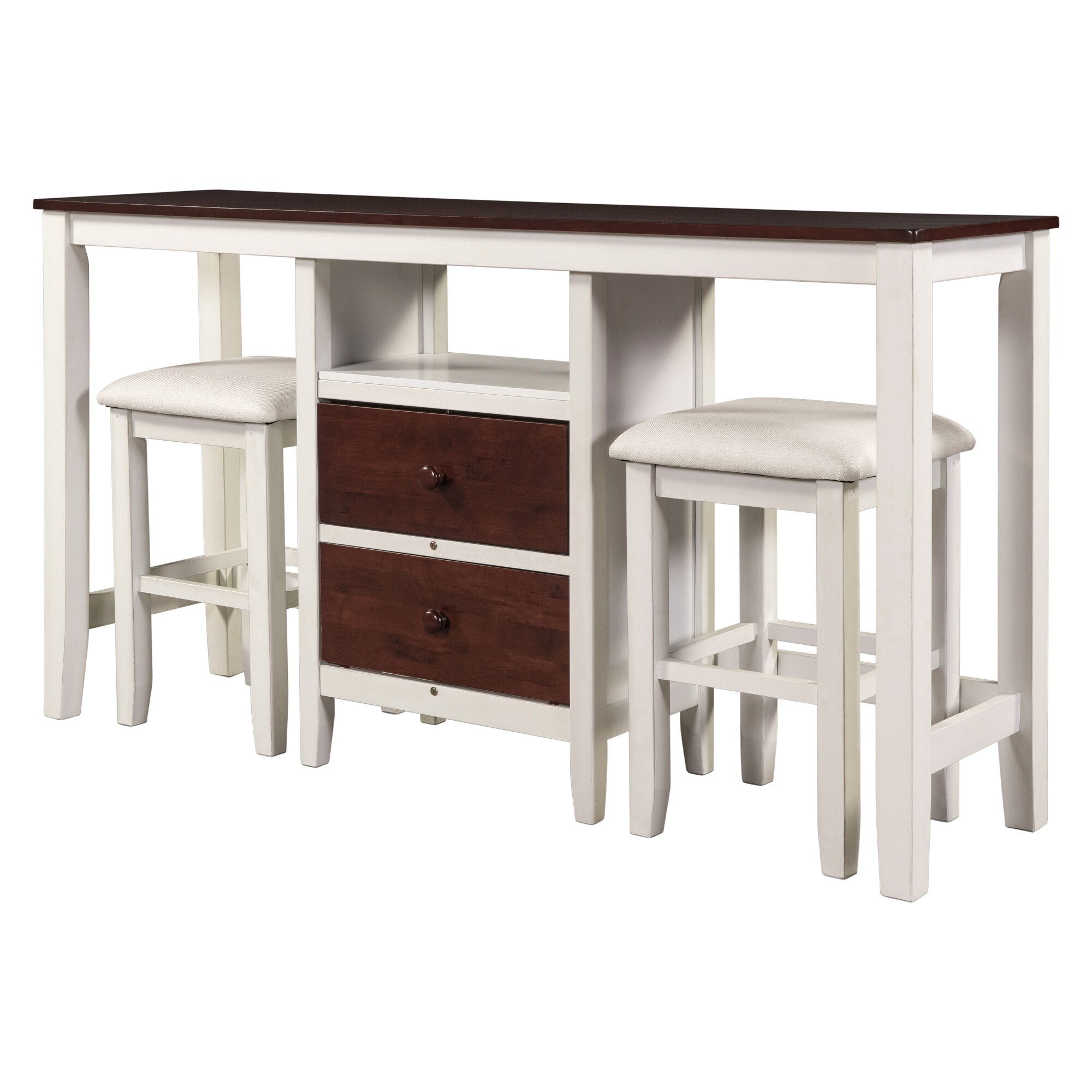 3-Piece Wood Dining Kitchen Set, White and Brown