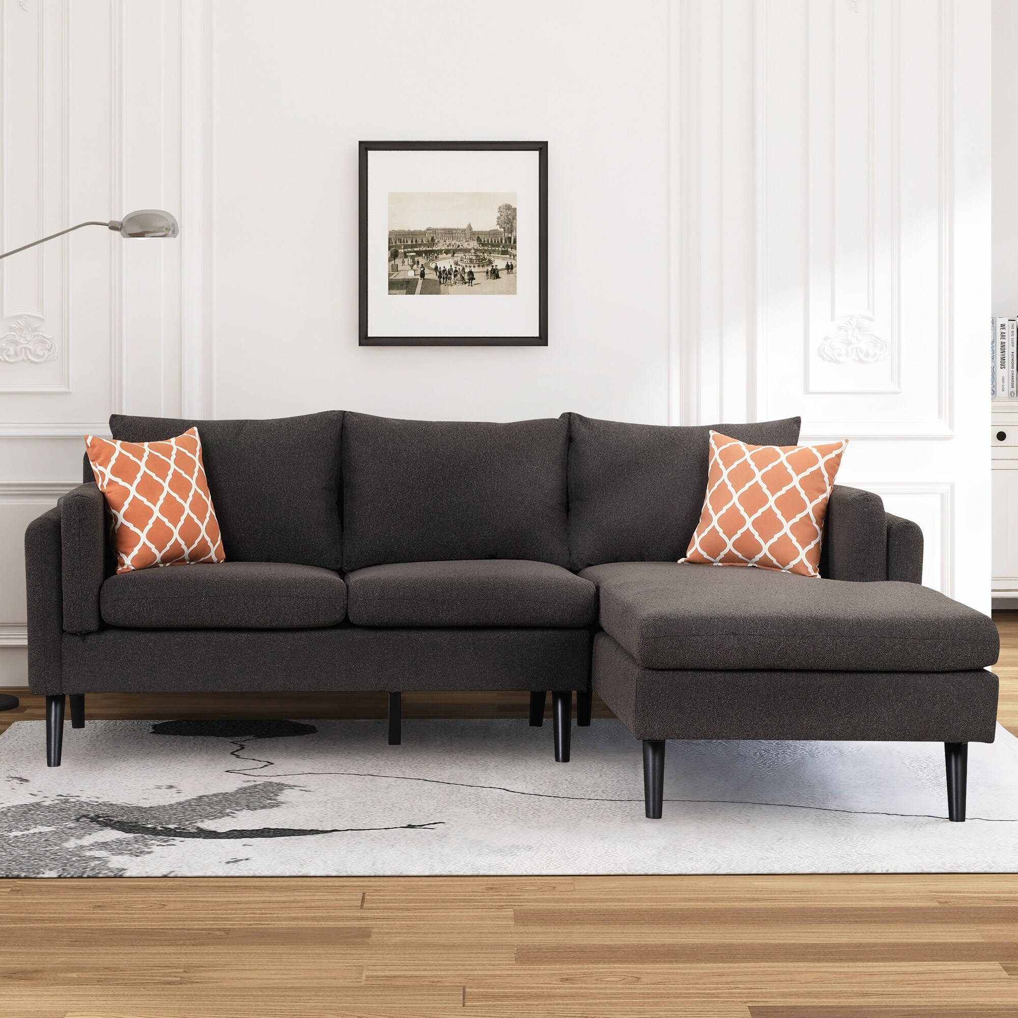 84.65" Linen 3-Seat Sofa with Soft Cushion, 2 Pillows and Wood Legs