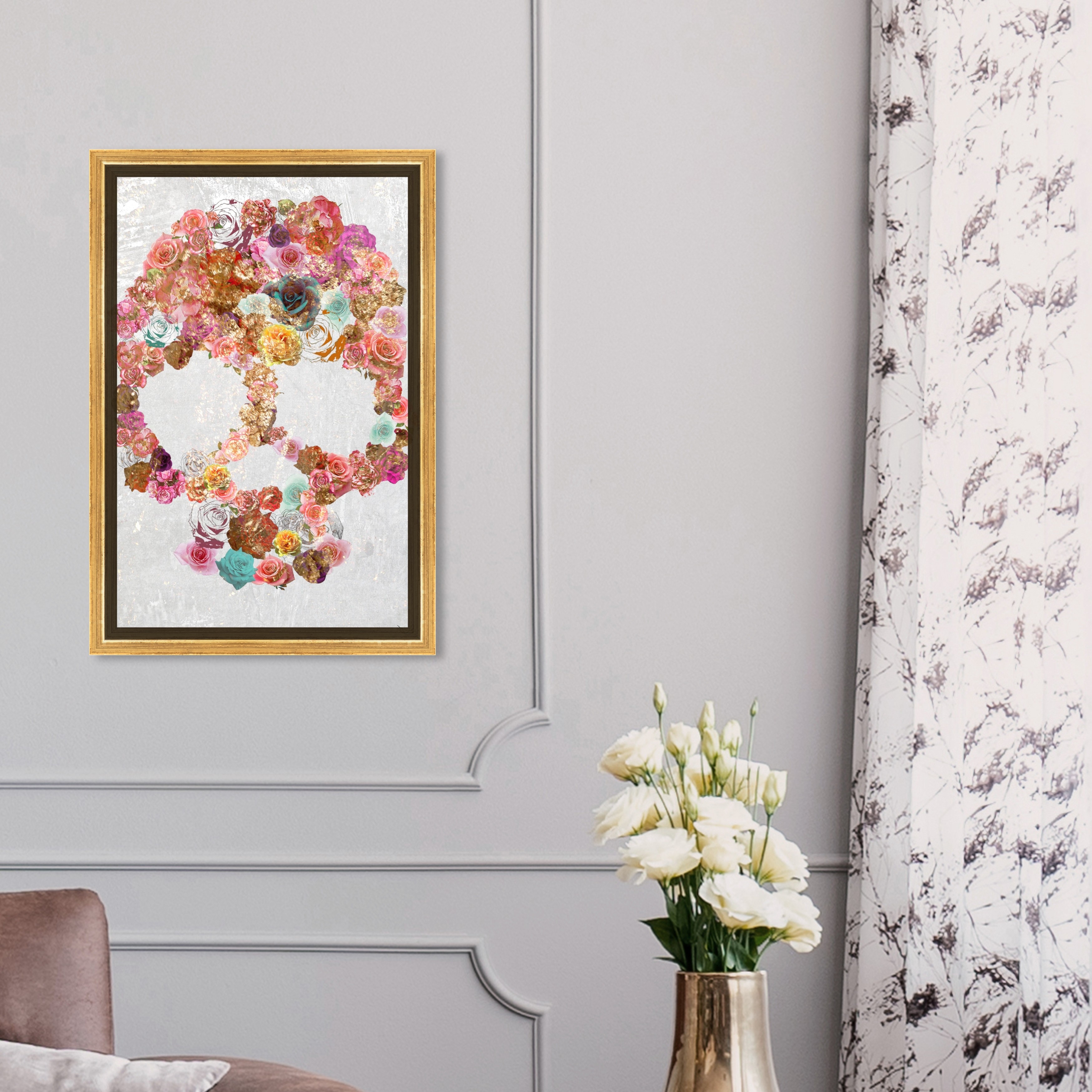 Oliver Gal 'Skull of Roses' Floral and Botanical Wall Art Framed Canvas Print Florals - Pink, White