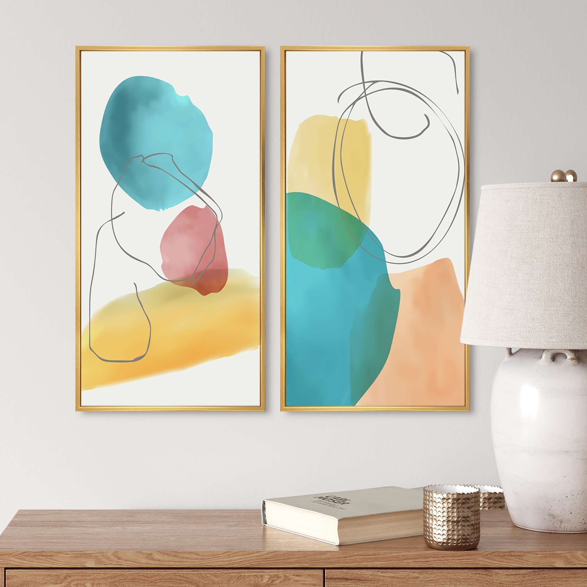 Designart "Foliage With Vibrant Organic Shapes IV" Geometric Framed Art Set of 2 Pieces
