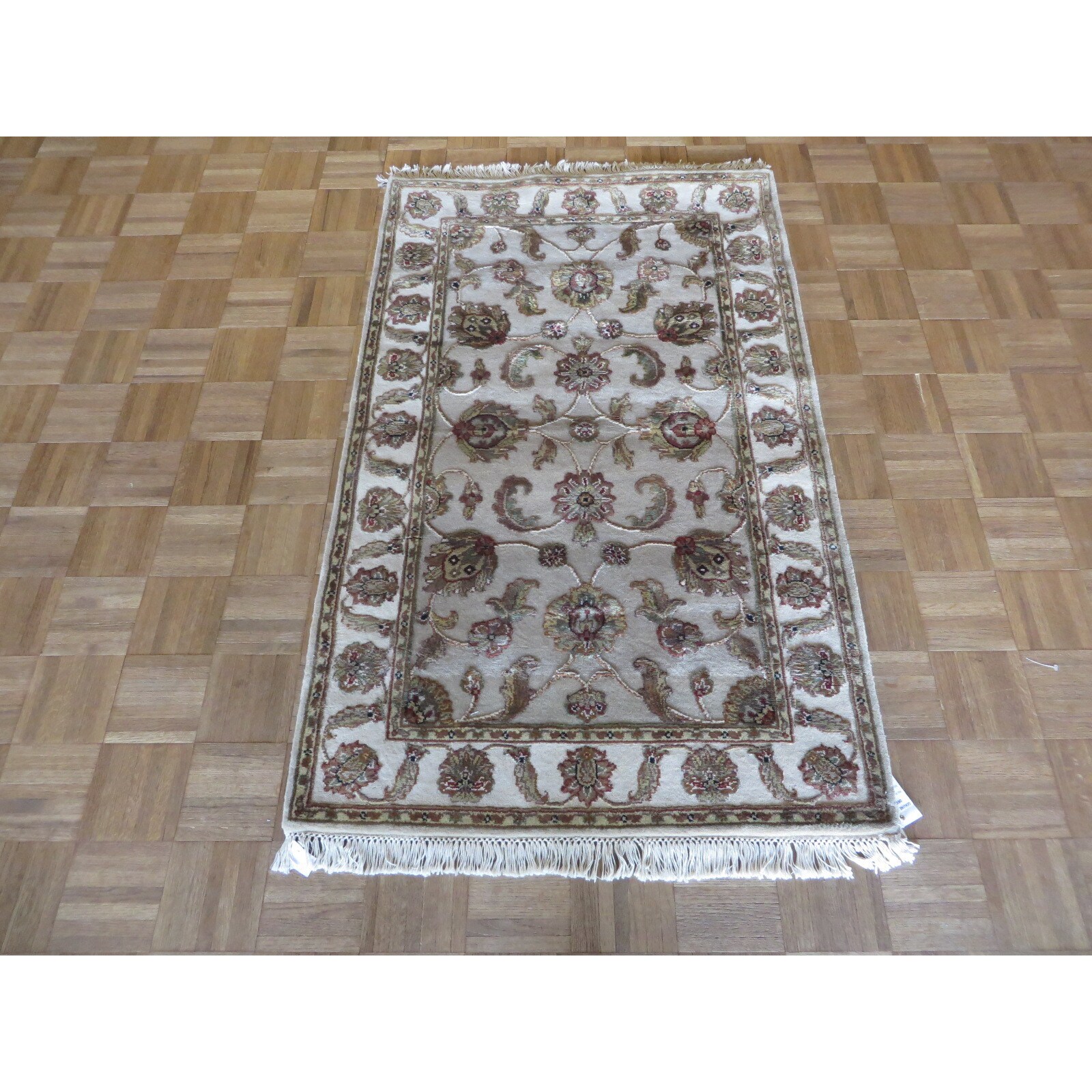 Hand Knotted Light Gray Tabriz with Wool & Silk Oriental Rug - 3'1 x 5'1