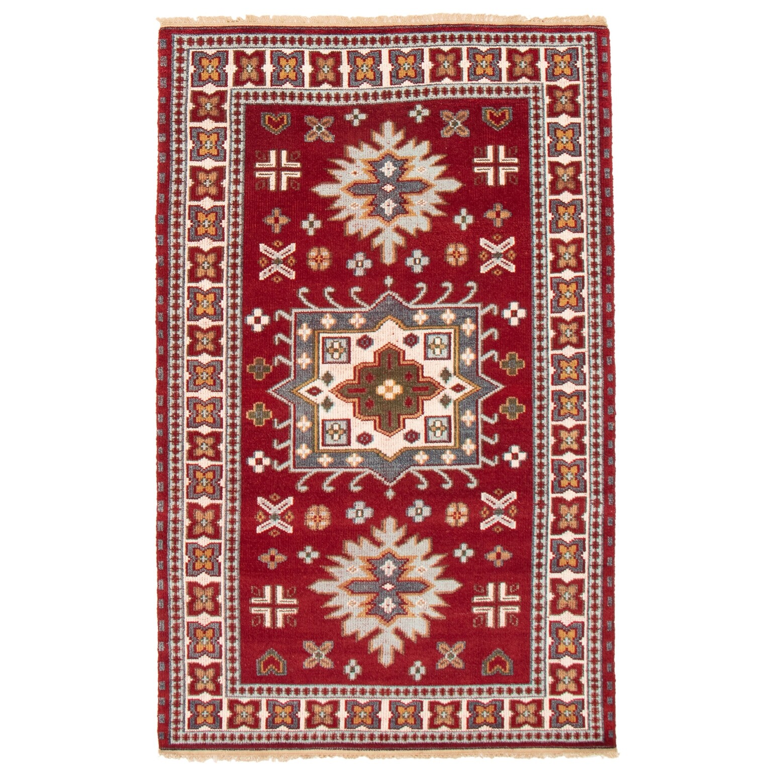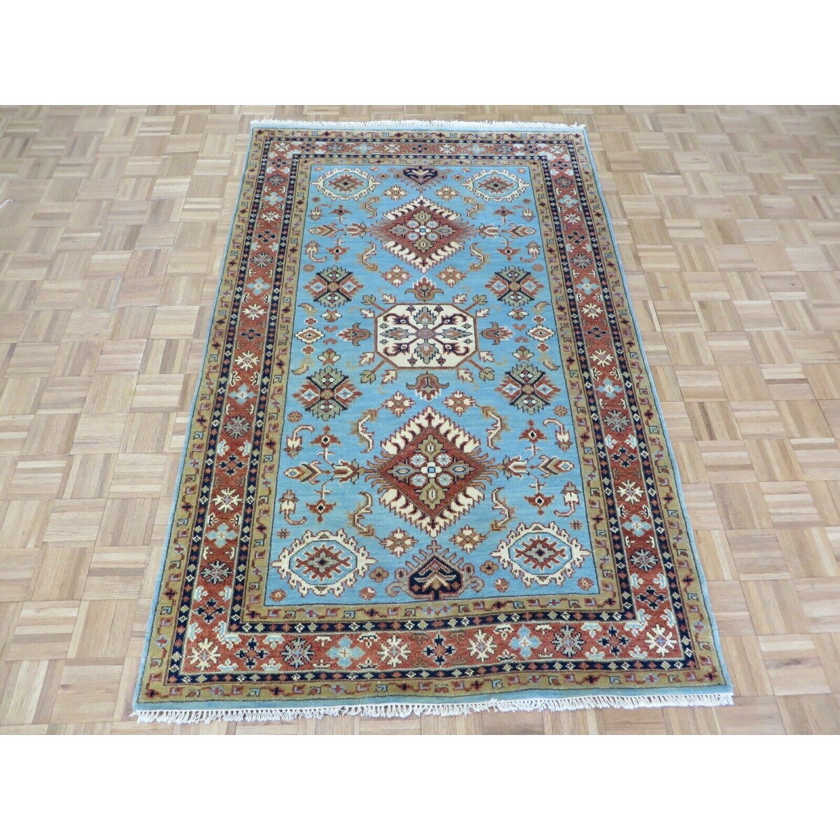 Hand Knotted Sky Blue Kazak with Wool Oriental Rug (5'1" x 8') - 5'1" x 8'