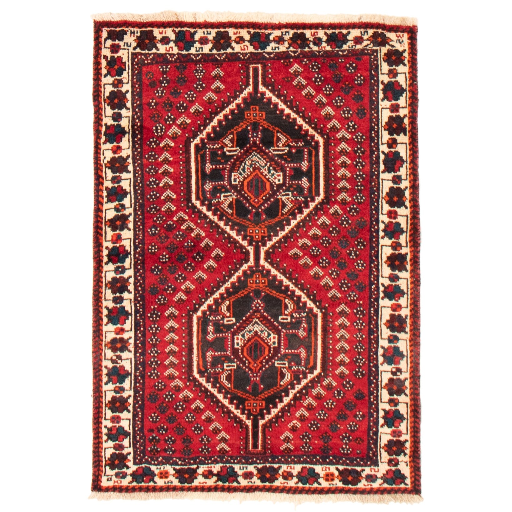 ECARPETGALLERY Hand Loomed Gabbeh Luribaft Ivory Wool Rug - 5'1 x 7'6