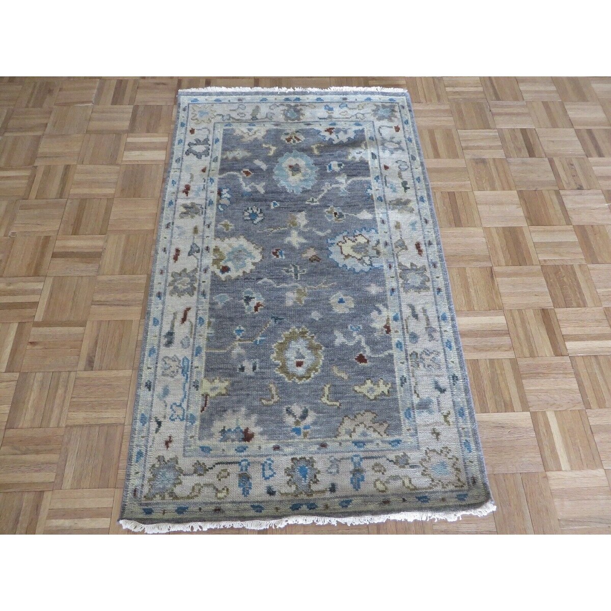 Hand Knotted Gray Oushak with Wool Oriental Rug (3' x 5'1") - 3' x 5'1"