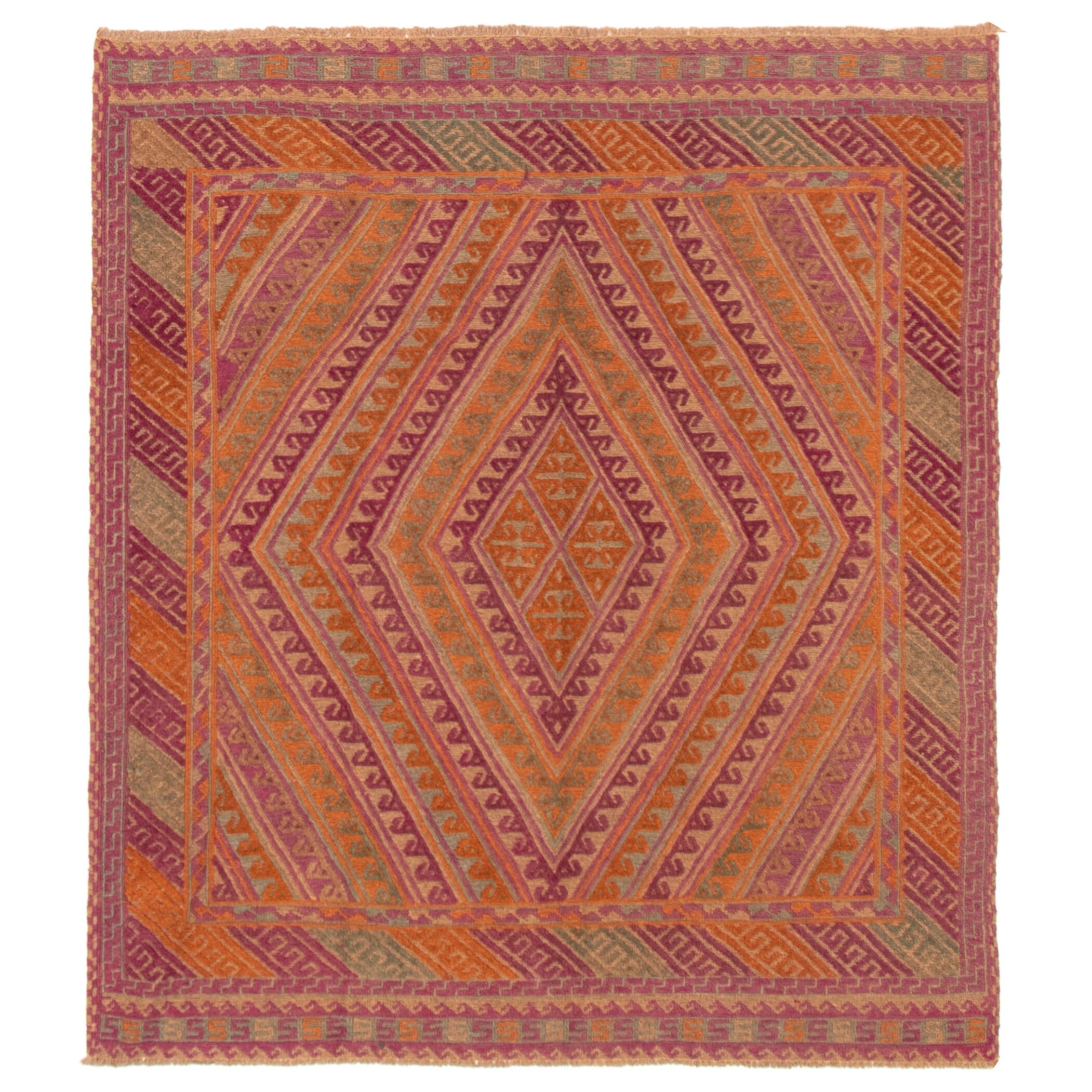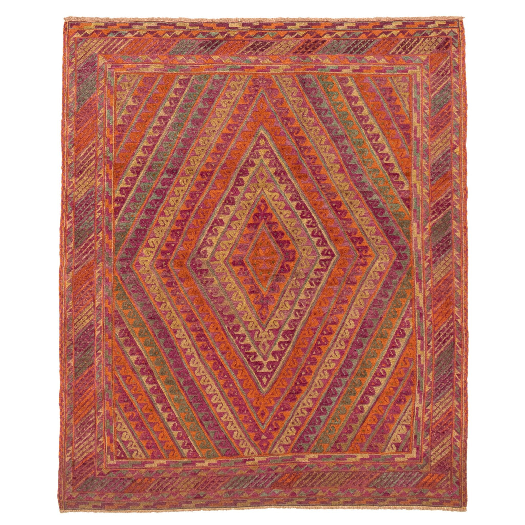 ECARPETGALLERY Hand-knotted Tajik Caucasian Orange, Purple Wool Rug - 5'1 x 6'4