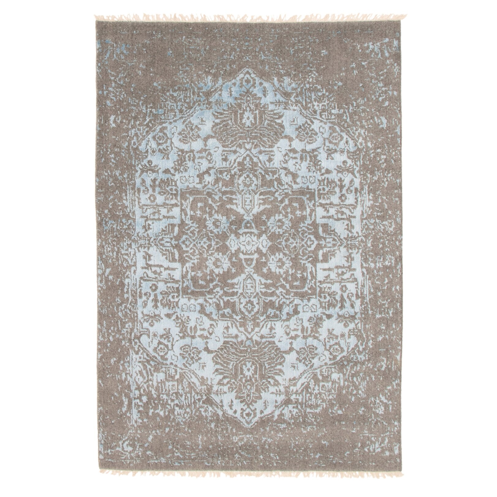 ECARPETGALLERY Hand Loomed Galleria Light Blue Viscose, Wool Rug - 5'1 x 7'6