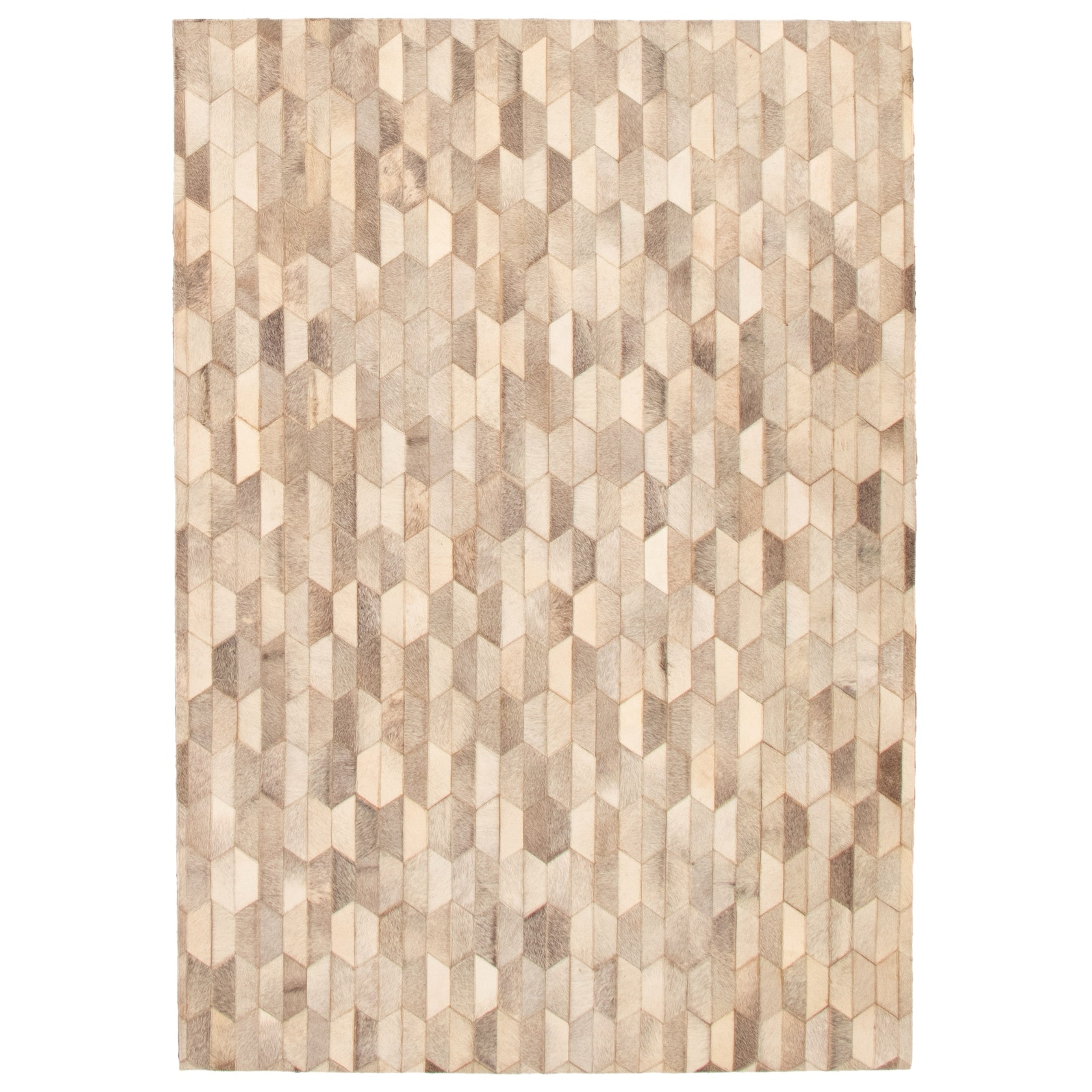 ECARPETGALLERY Handmade Cowhide Patchwork Light Grey Leather Rug - 5'1 x 7'4