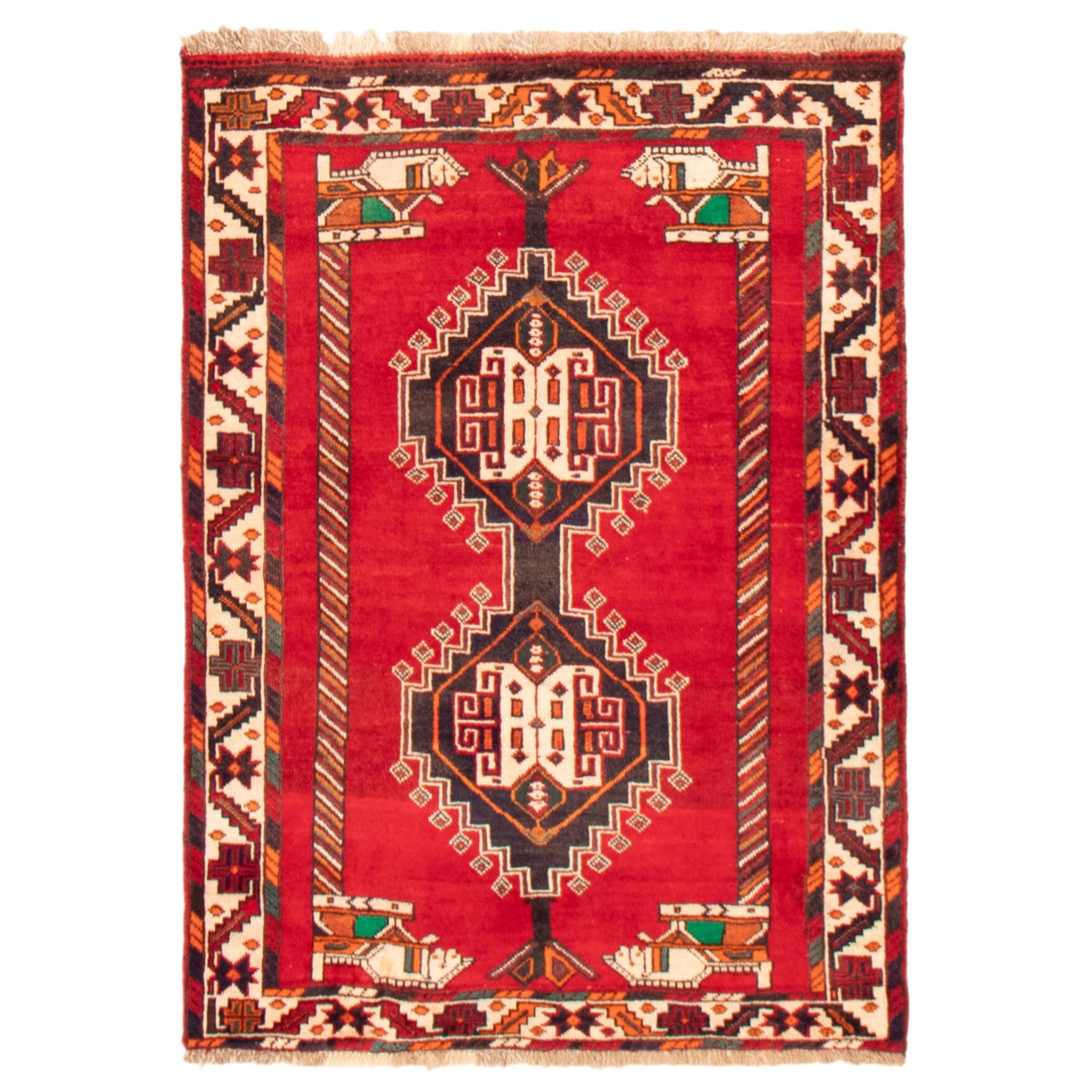 HERAT ORIENTAL Persian Hand-knotted Tribal Geometric Hamadan Wool Rug - 3'6 x 5'1