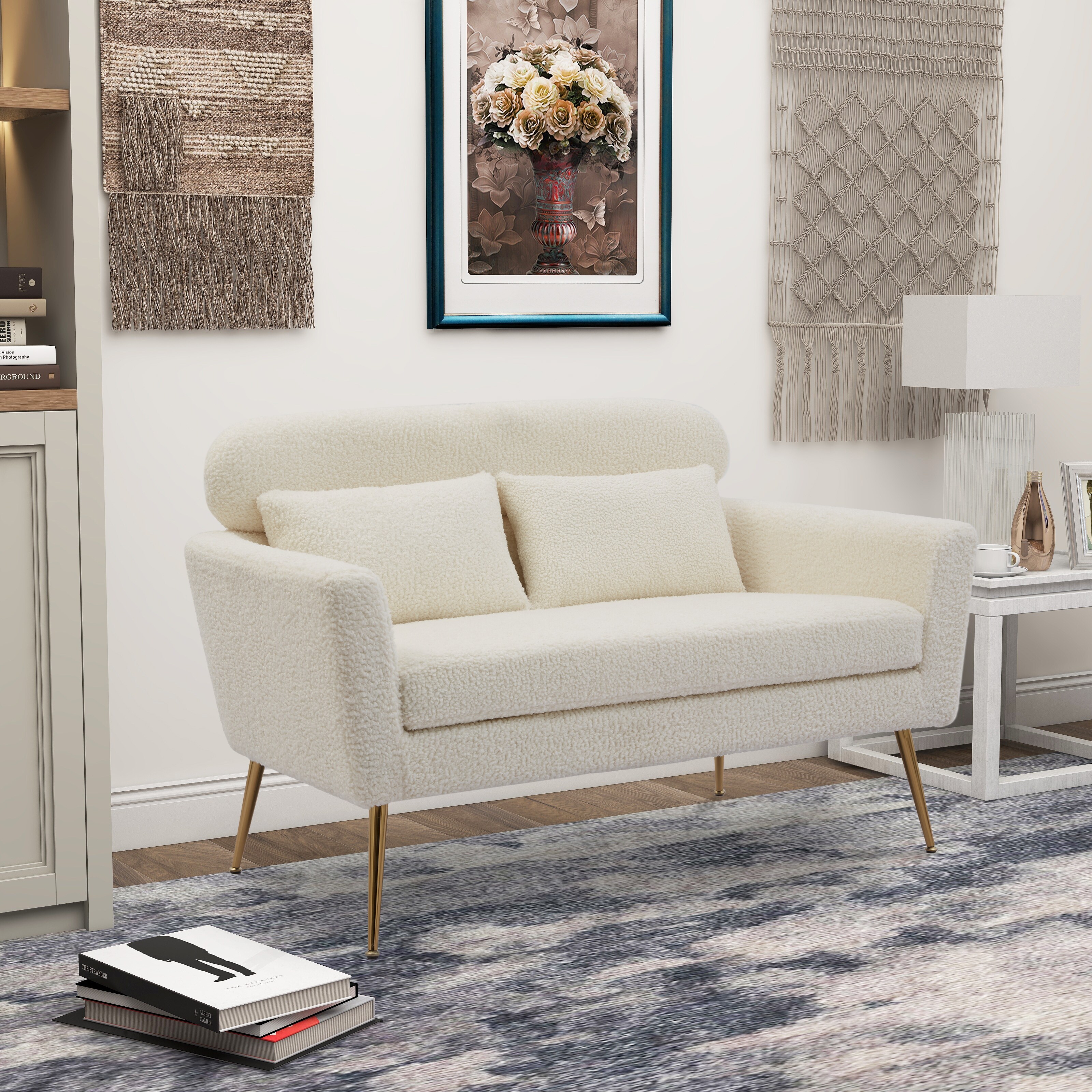51"W Modern Boucle Loveseat Sofa With 2 Throw Pillows