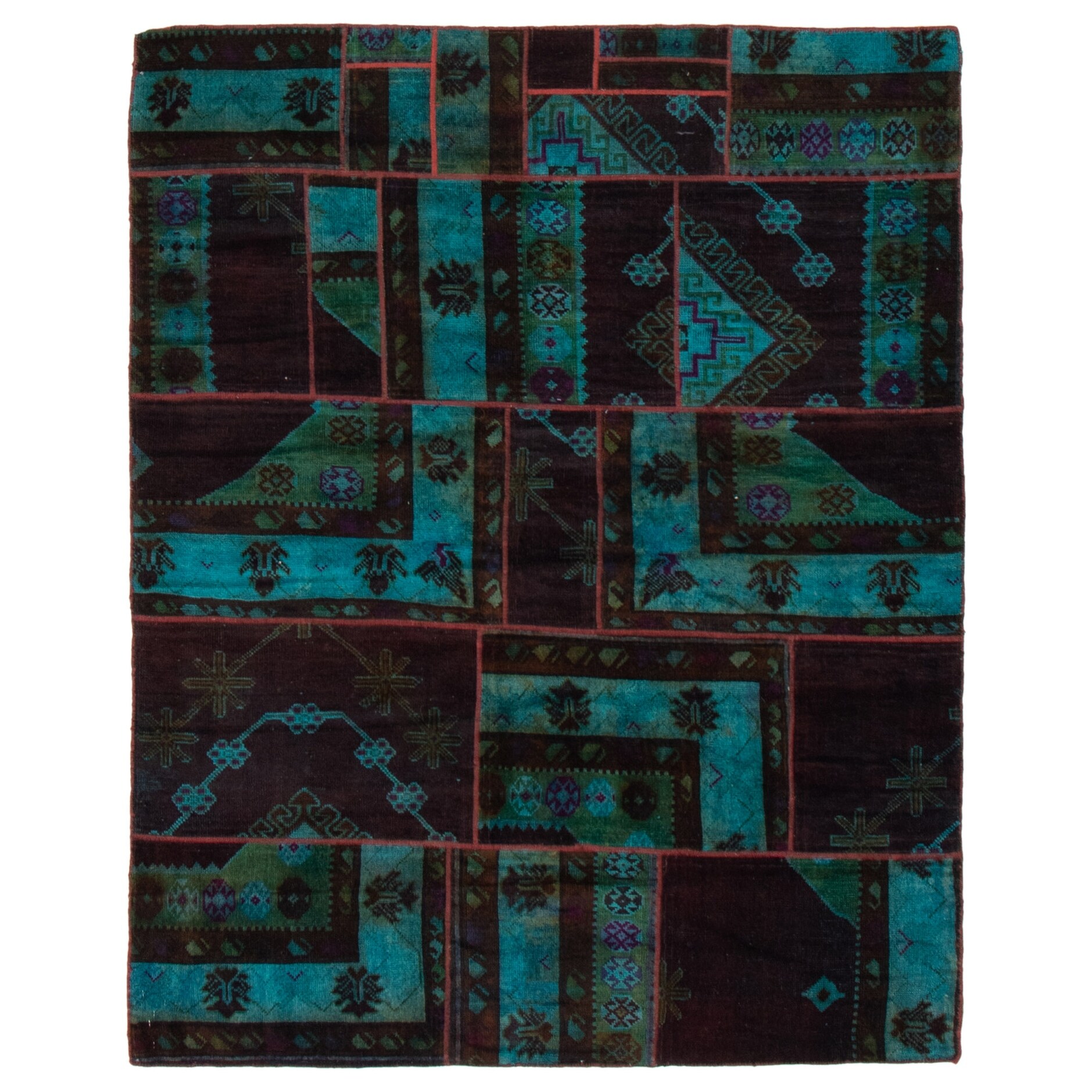 ECARPETGALLERY Hand-knotted Color Transition Patchwork Teal Wool Rug - 5'1 x 6'6