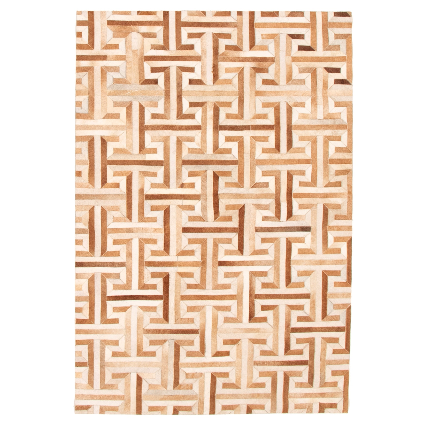 ECARPETGALLERY Handmade Cowhide Patchwork Light Brown Leather Rug - 5'1 x 8'2