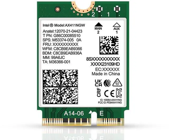 Intel AX411 Double Connect WiFi 6E (Gig+) CNVio2 Tri Band 2.4/5/6GHz Wireless Adapter AX411NGW 802.11ax 2.4Gbps Bluetooth 5.3 No vPro