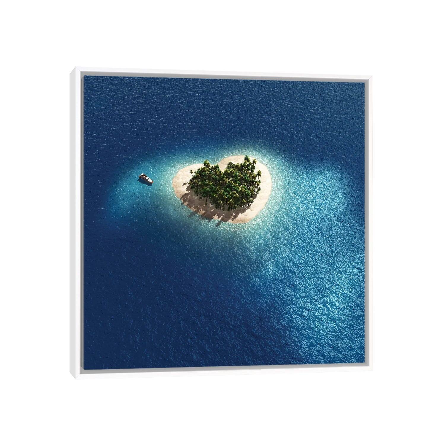 iCanvas "Aerial View of Heart Shape Tropical Island" by Mike Kiev Framed Canvas Print