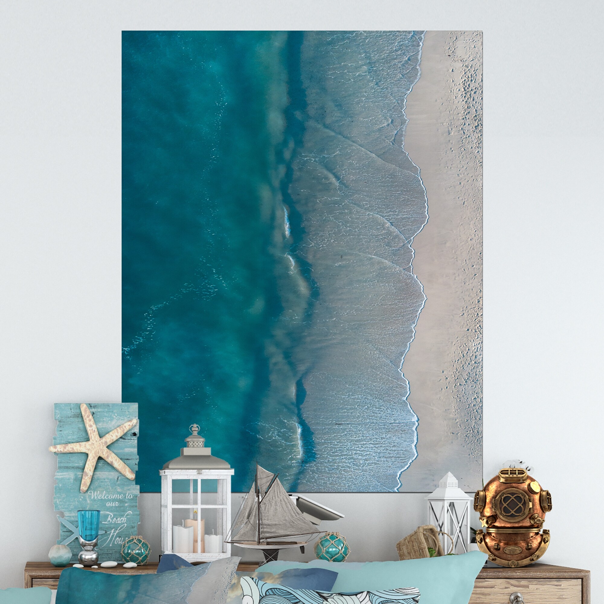 Designart "Ocean Beach Aerial View VIII" Nautical & Coastal Canvas Wall Decor