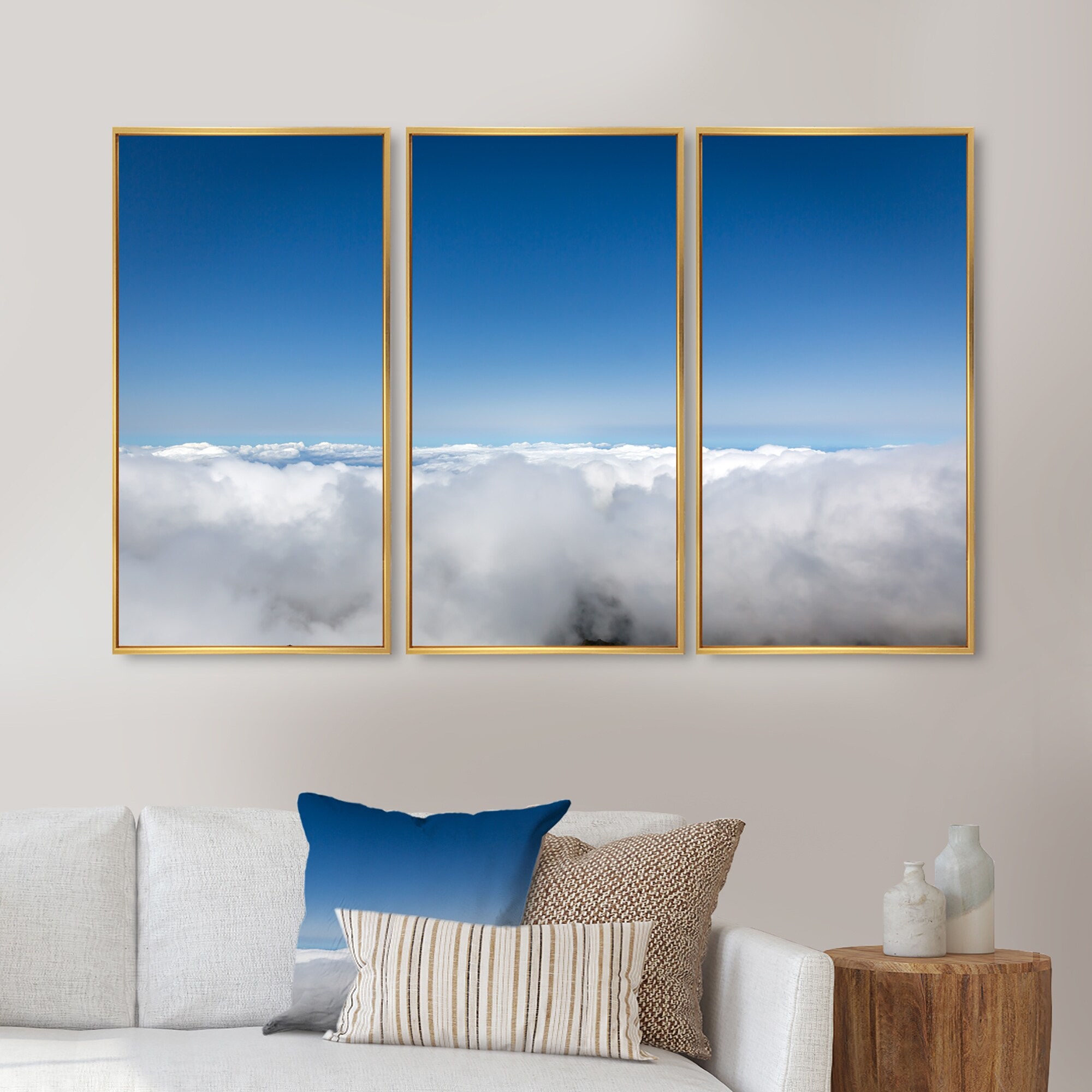 Designart "Aerial View of Sky over Clouds" Landscape Framed Art Prints Set of 3 - 4 Colors of Frames