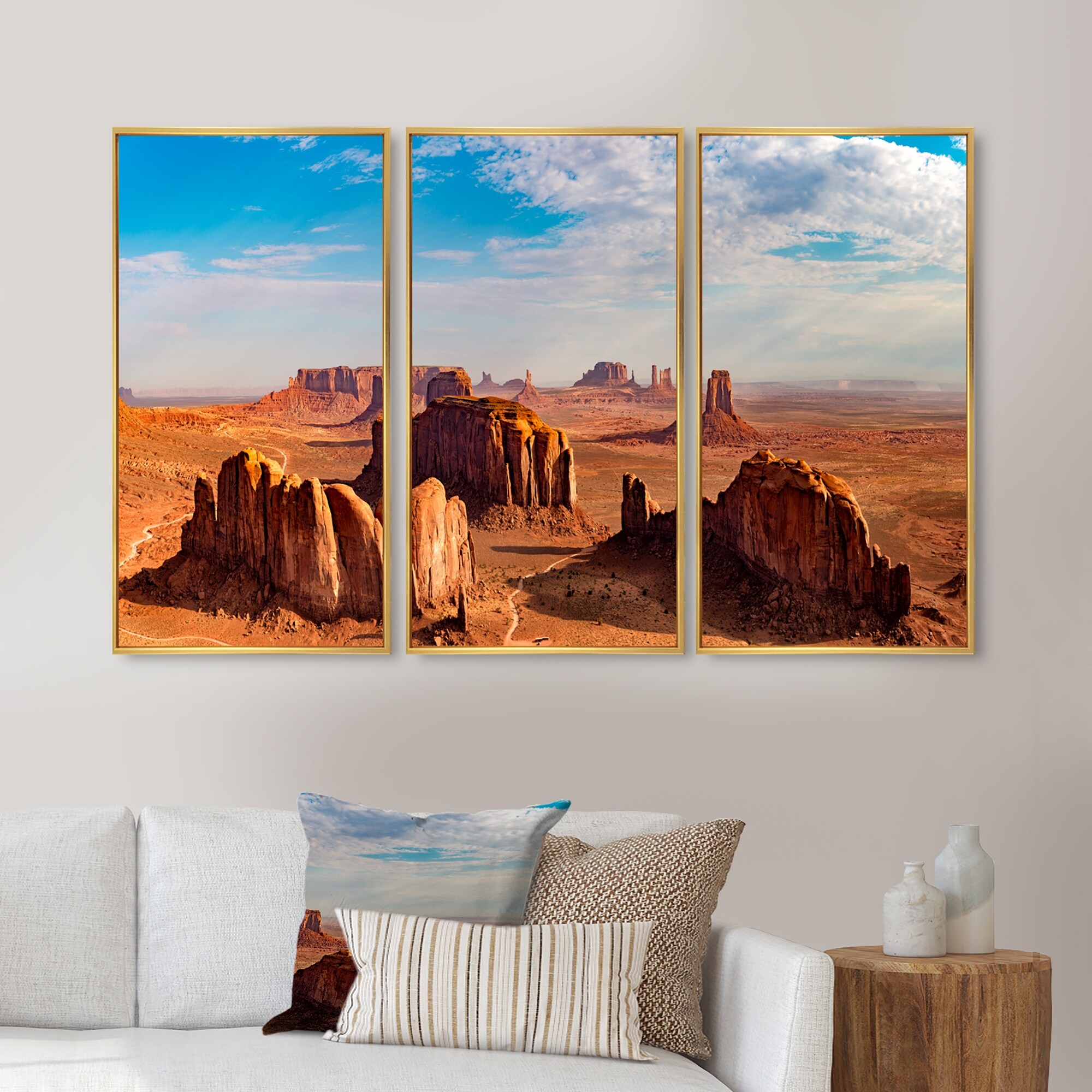 Designart "Monument Valley Aerial Sky View" Landscape Framed Art Prints Set of 3 - 4 Colors of Frames