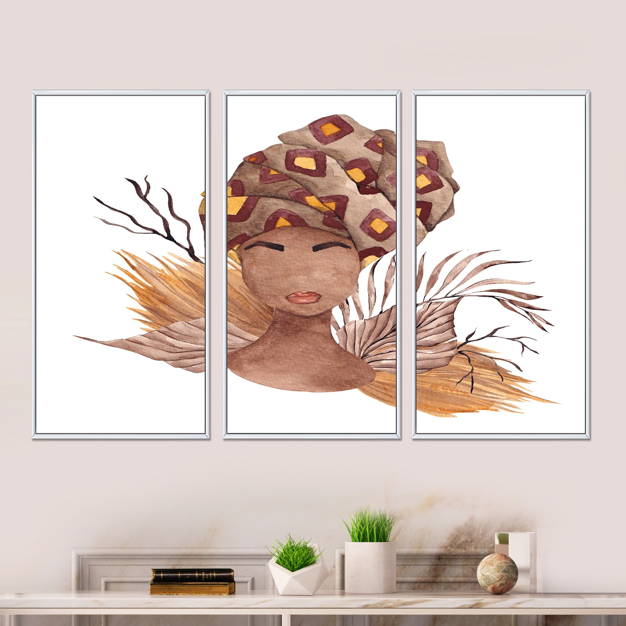 Designart "African American Woman, Dried Flowers, Leaves IV" Glam Framed Wall Art Set of 3 - 4 Colors of Frames