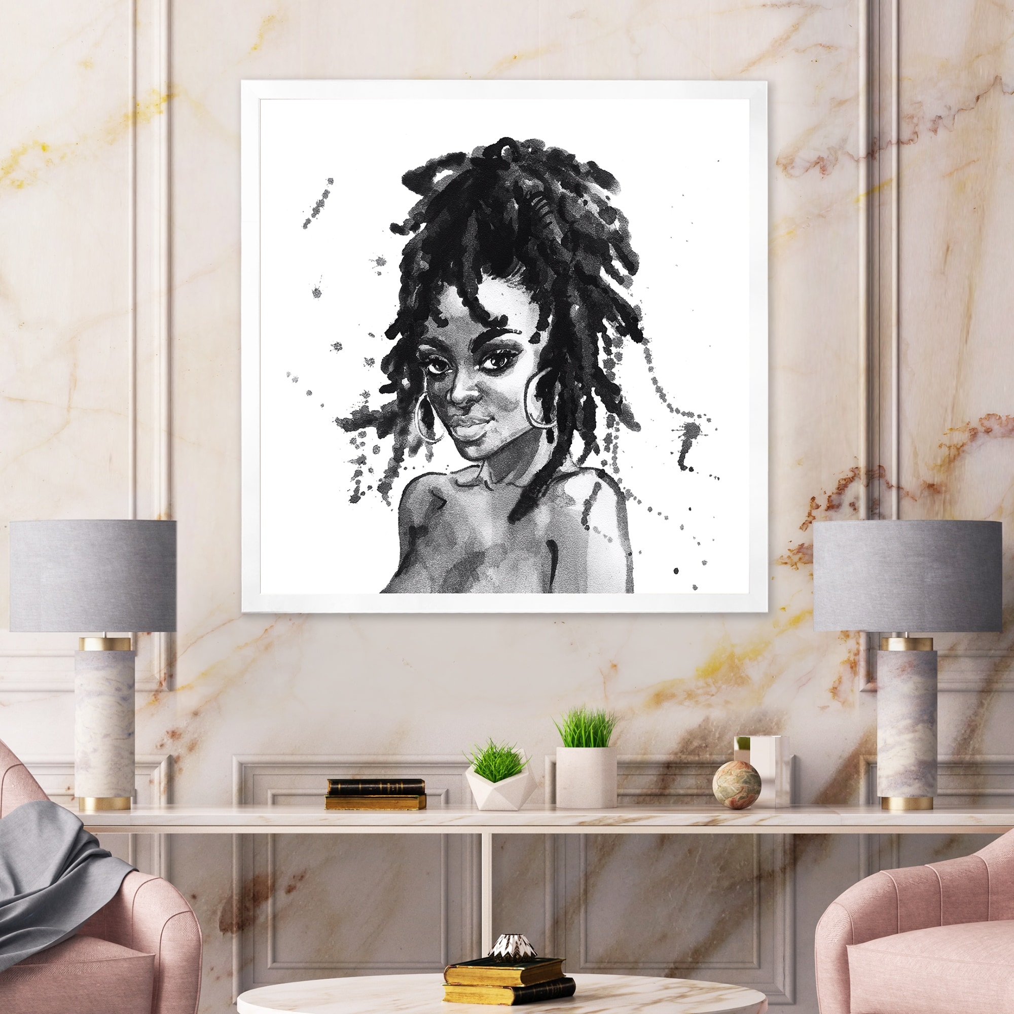 Designart "Monochrome Portrait of African American Woman II" Modern Framed Art Print