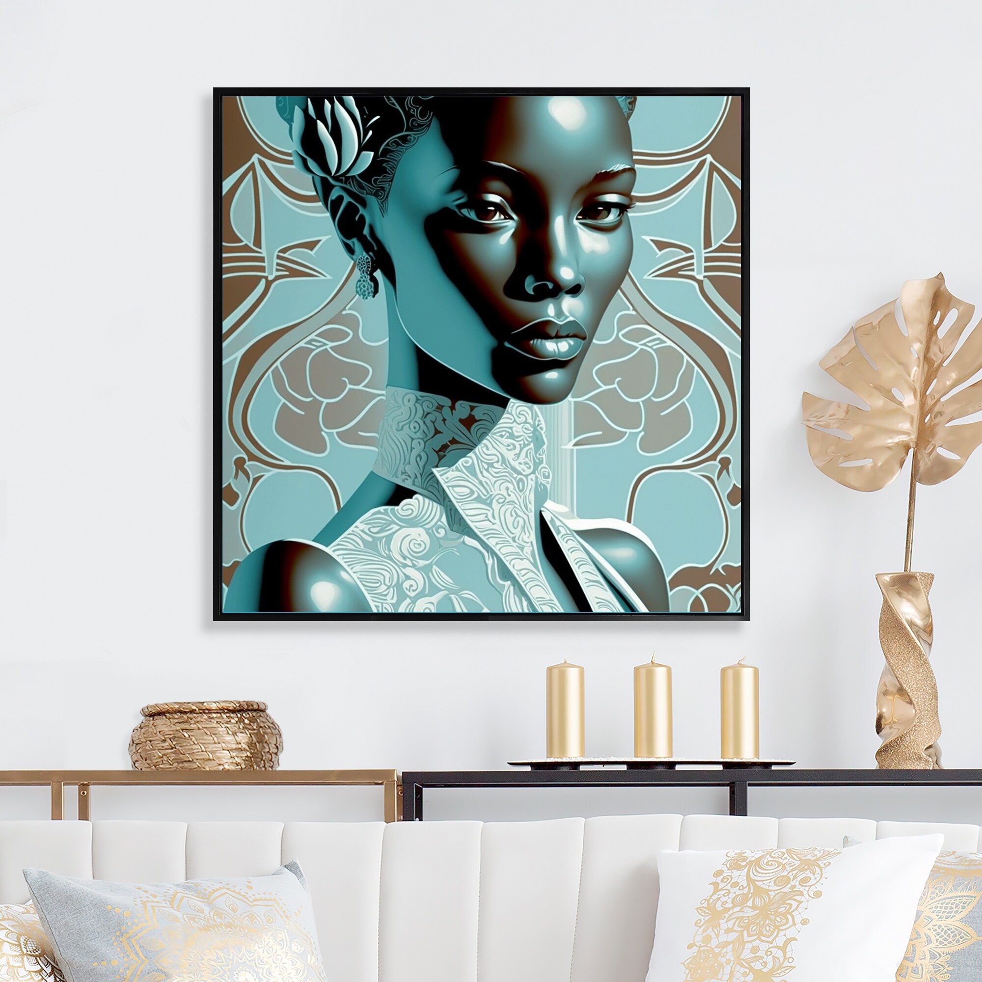 Designart "Classy Portrait of Elegant African Lady VII" African American Framed Canvas Wall Art Print