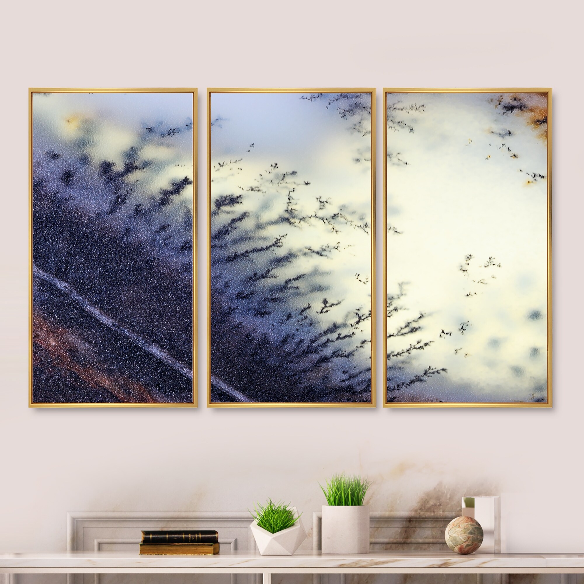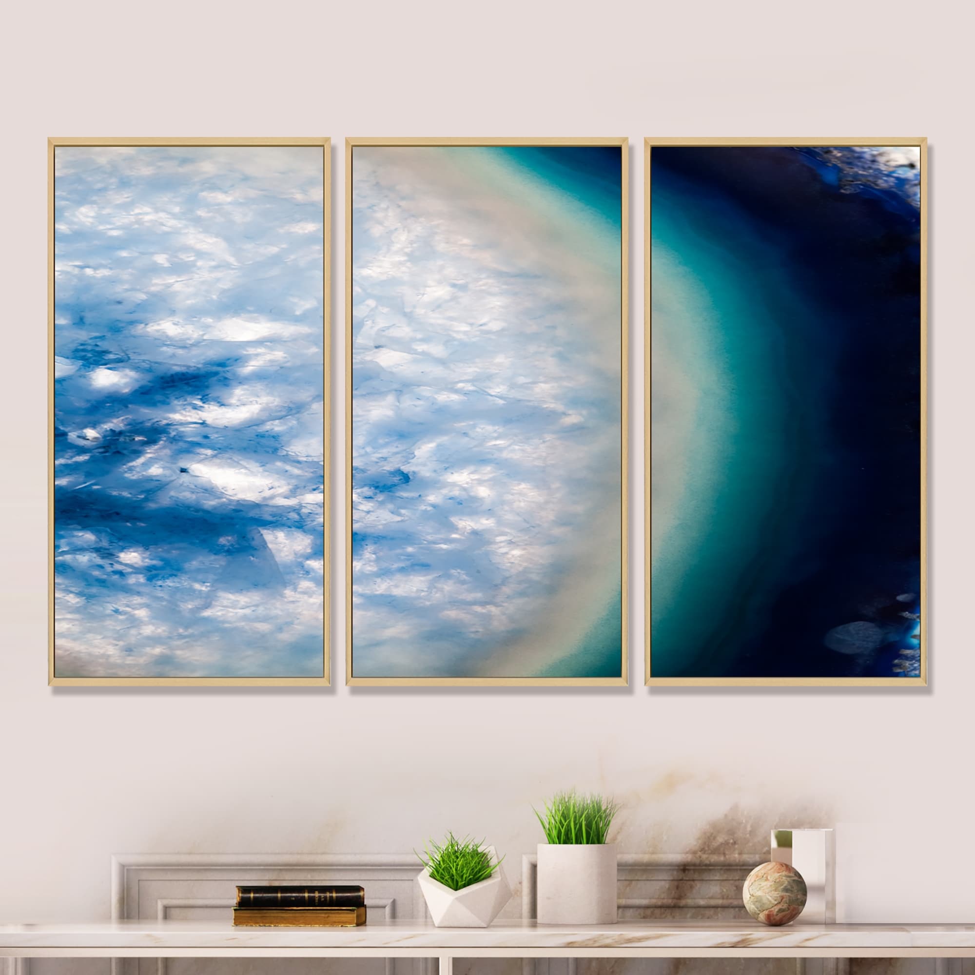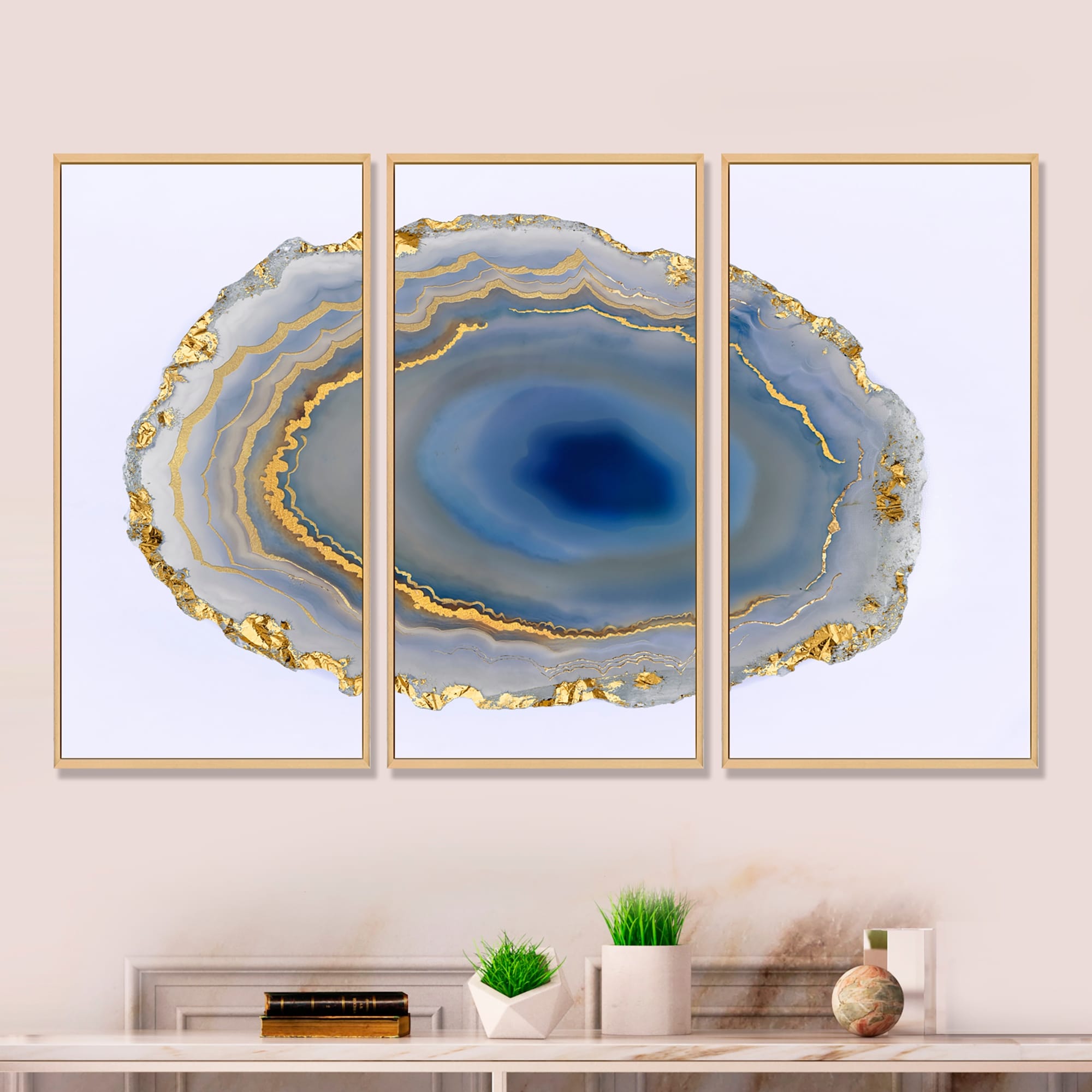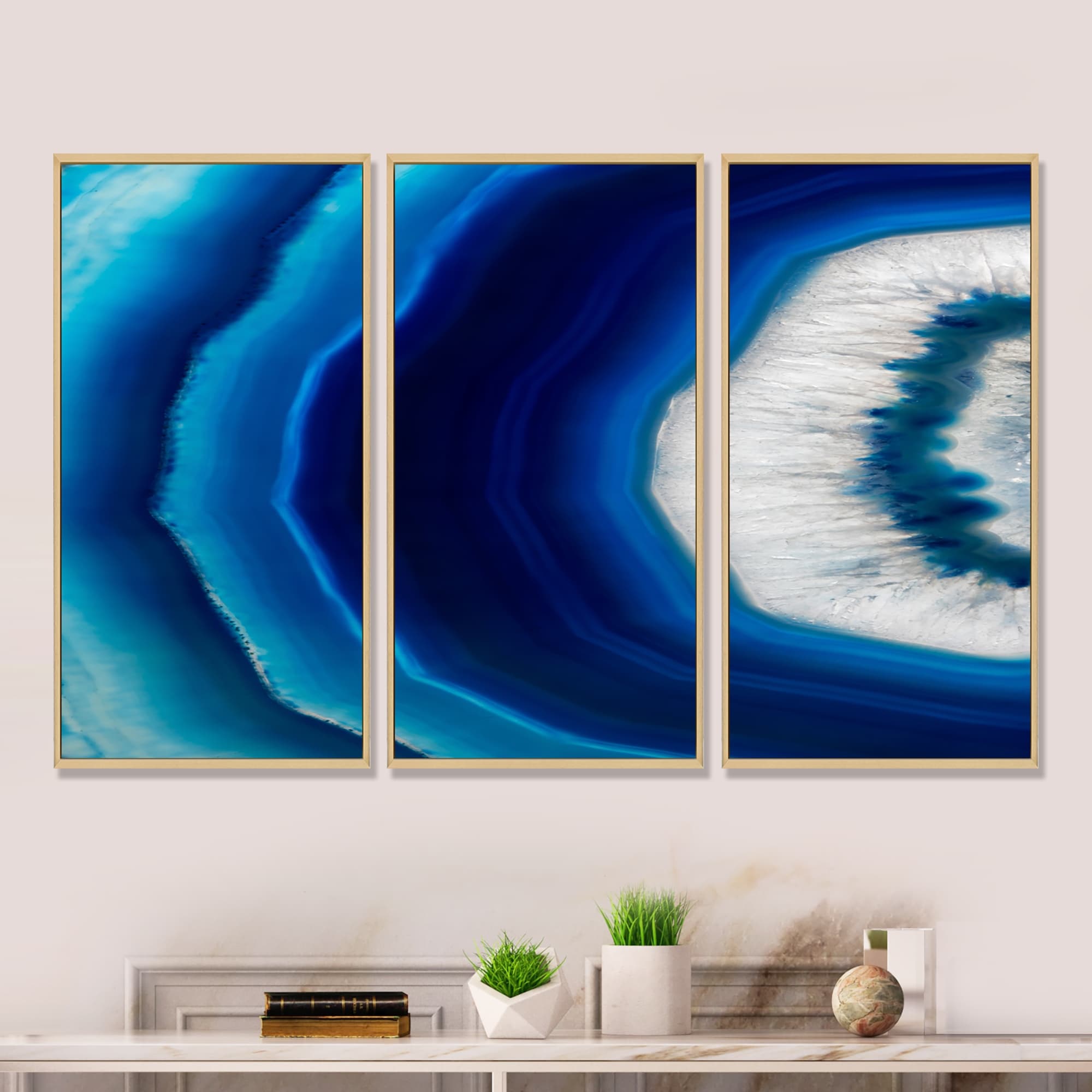 Designart "Blue Agate Crystal" Abstract Framed Wall Decor Set of 3 - 4 Colors of Frames
