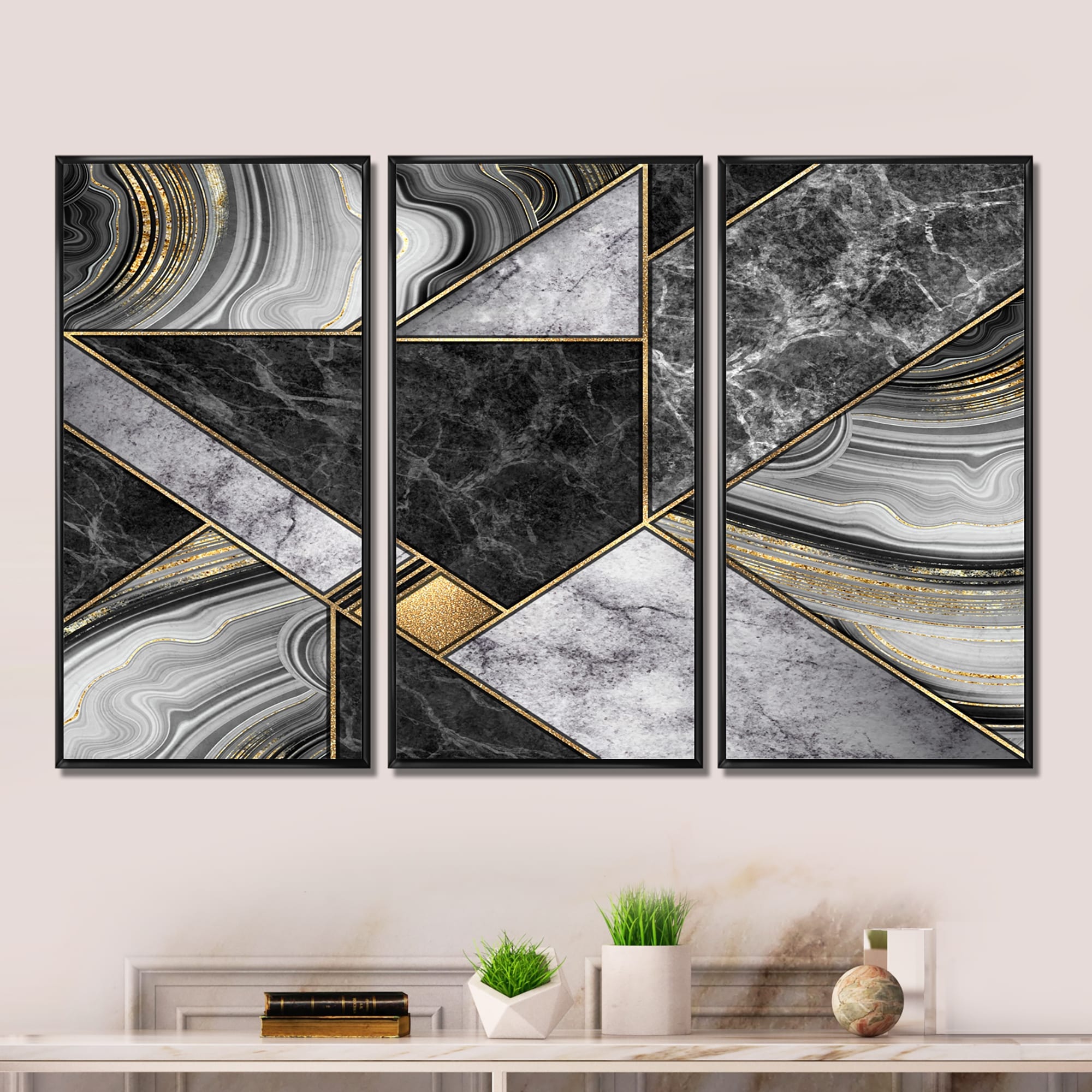 Designart "Marble Granite Agate With Touches of Gold" Modern Framed Artwork Set of 3 - 4 Colors of Frames