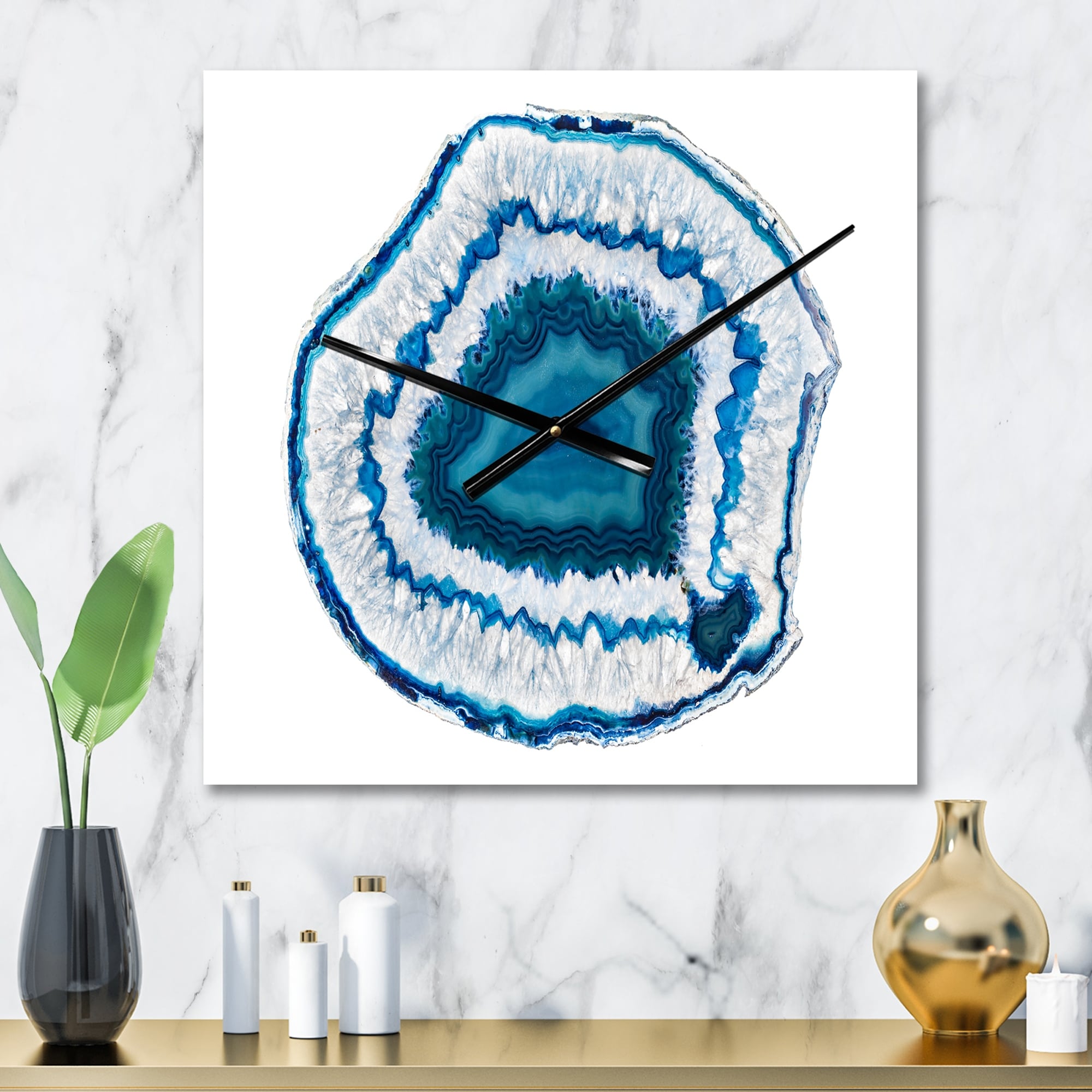 Designart 'Blue Agate Crystal' Abstract Digital Art Circle Metal Wall Art