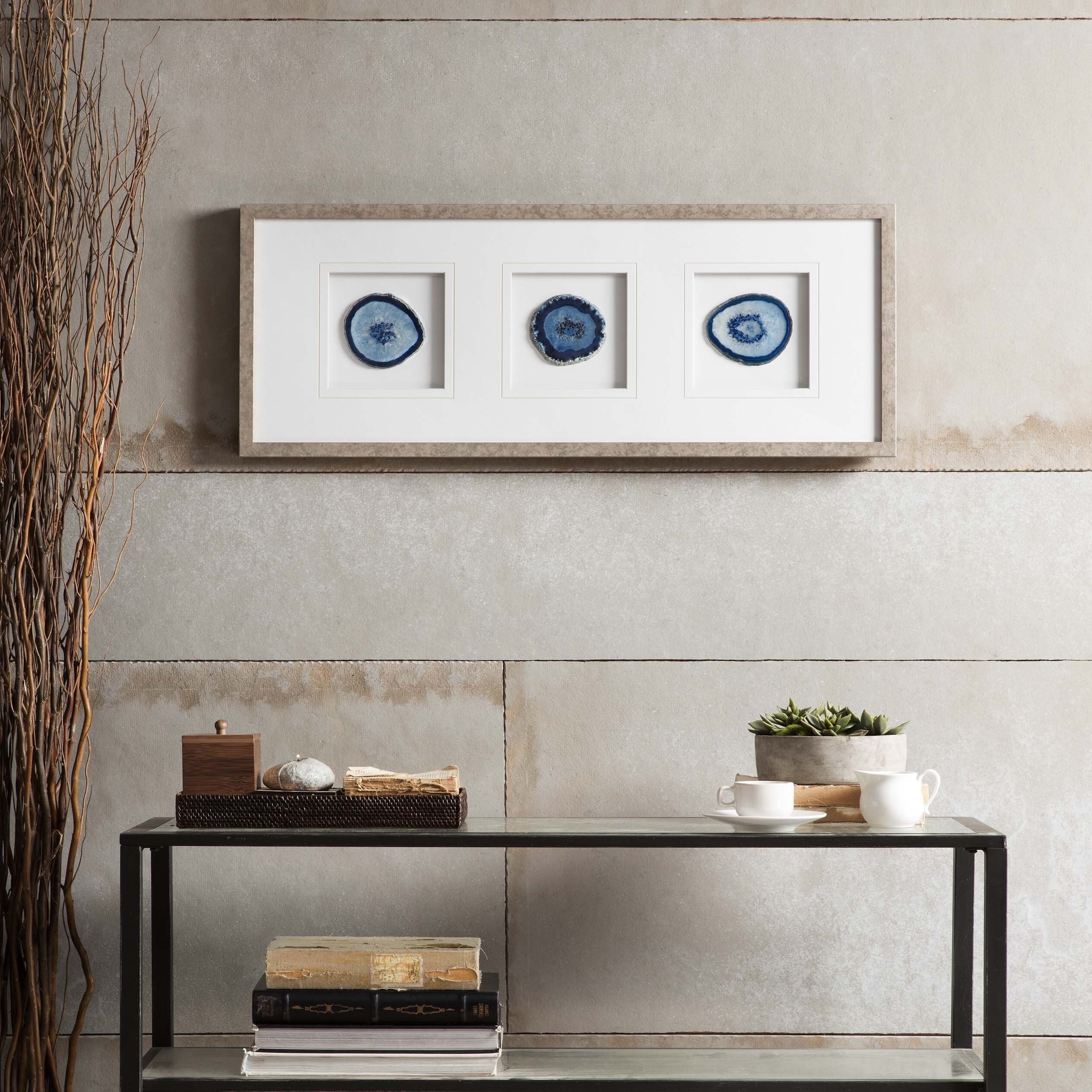 Madison Park Blue Agate Trio Blue Real Stone Framed Glass and Double Matted Wall Art